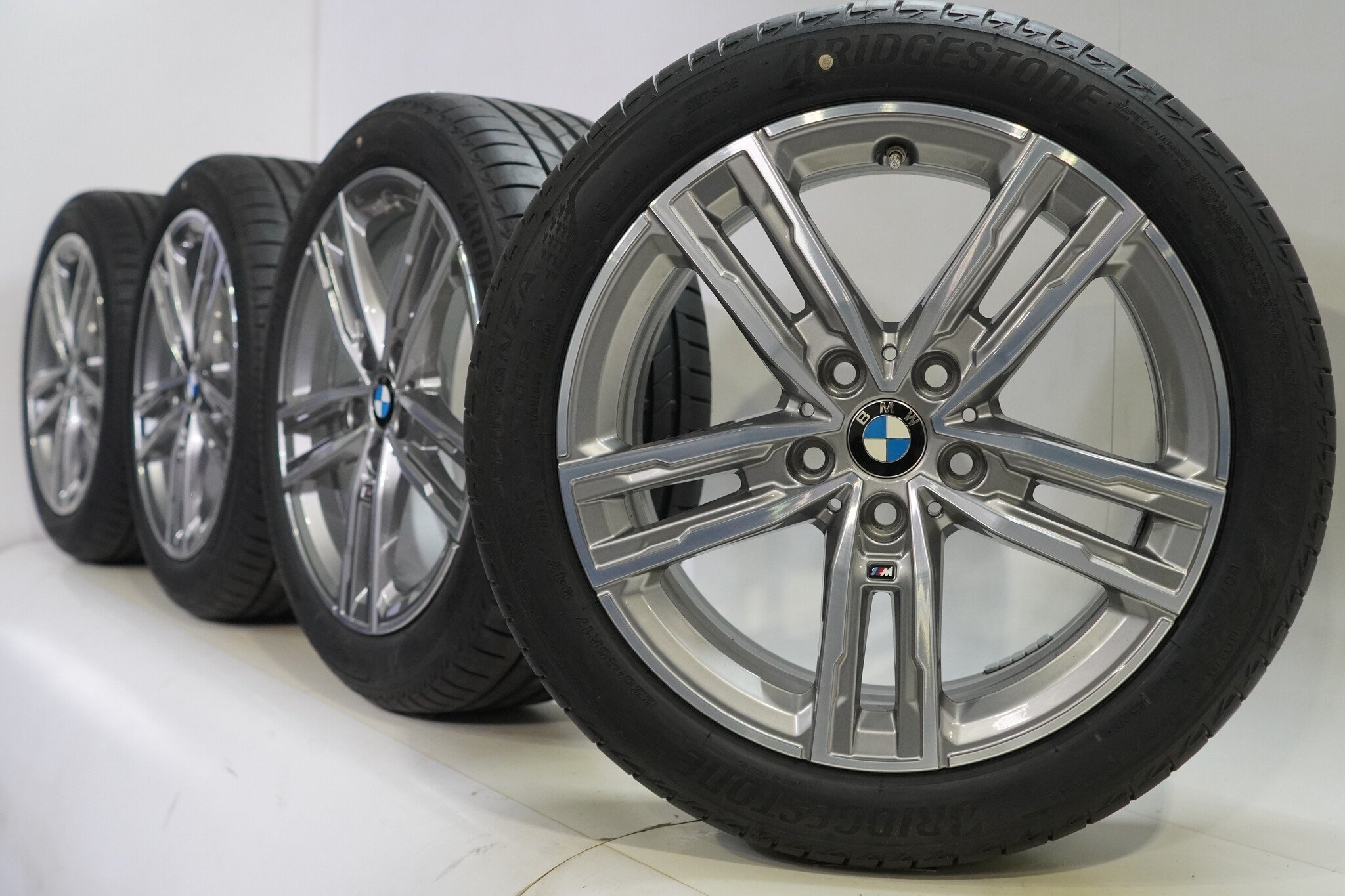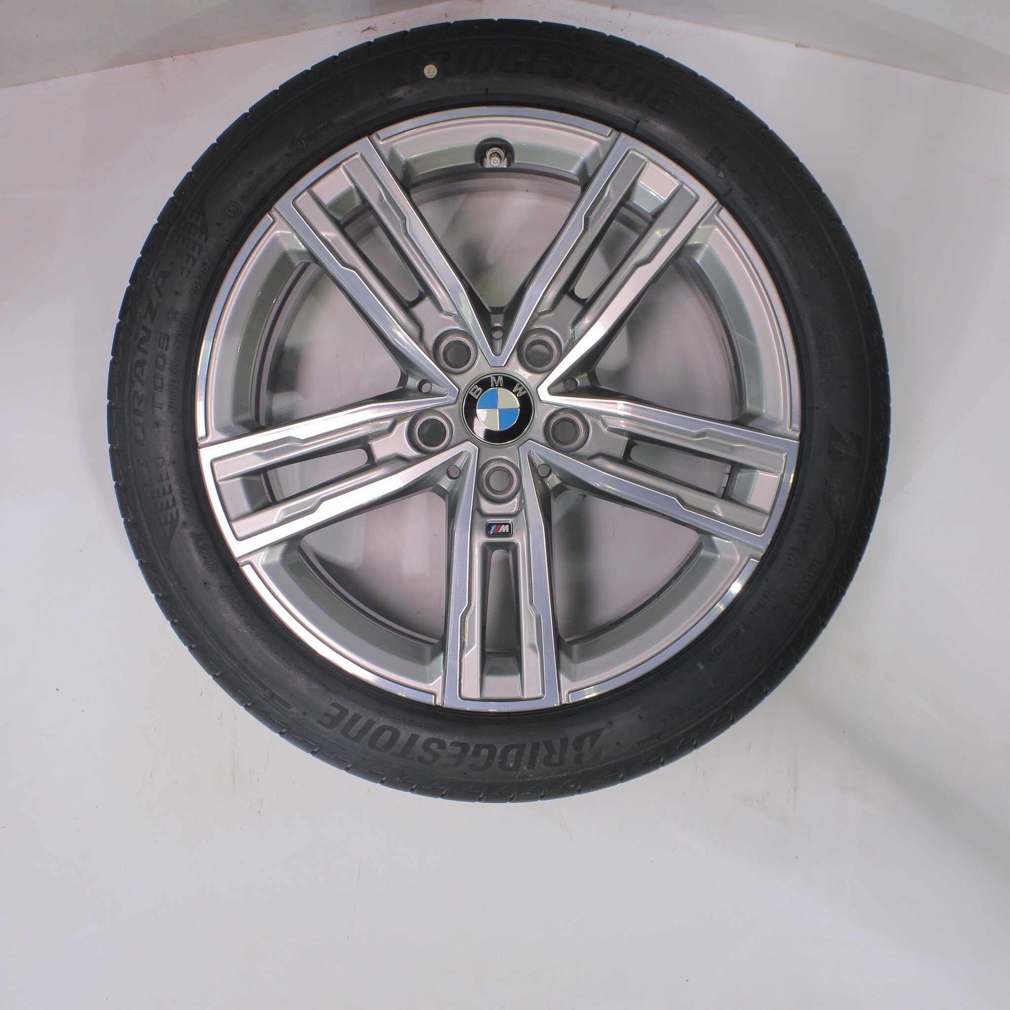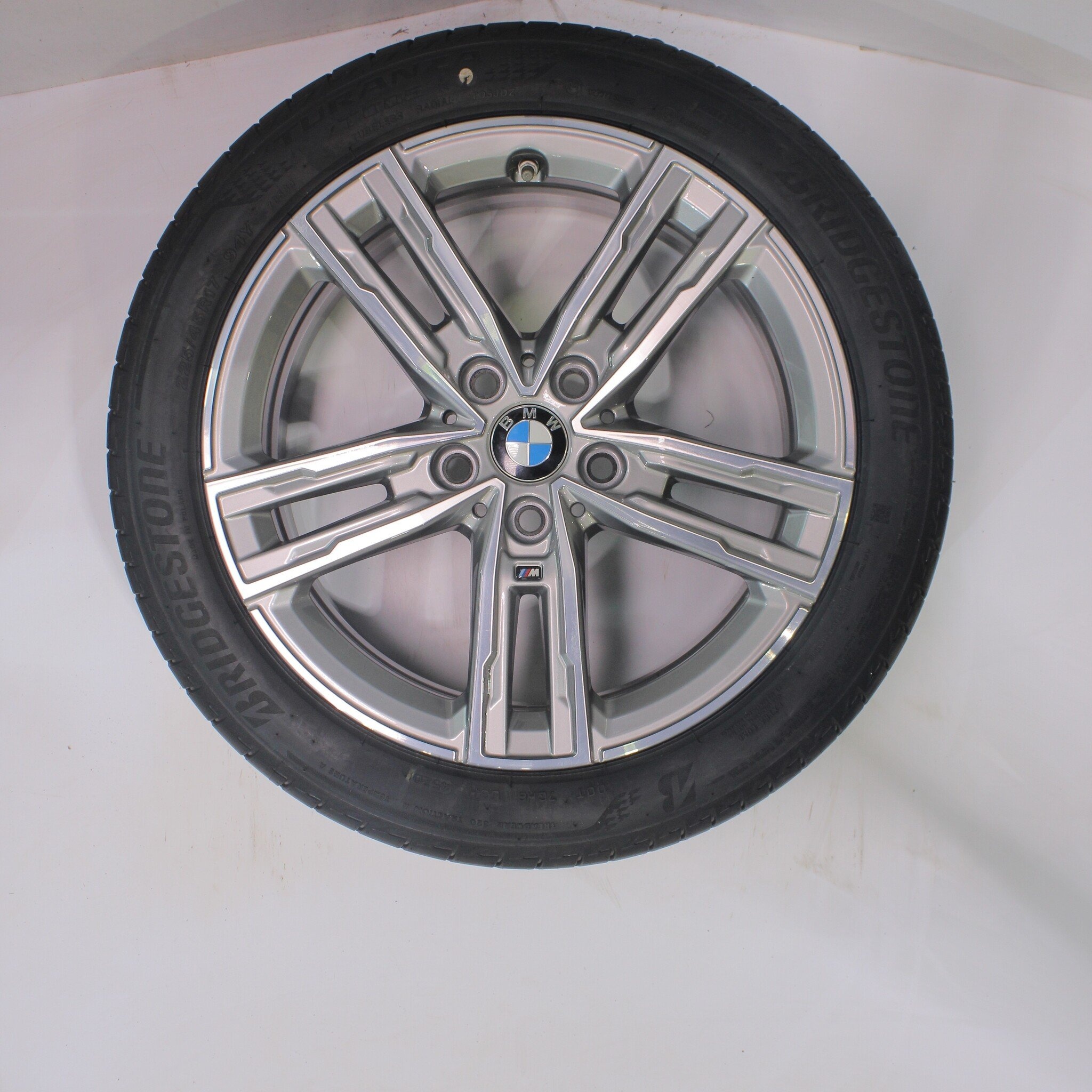 Originele wielset van BMW, styling 550M, 17 inch velgen met Bridgestone TURANZA T005 Zomerbanden. Deze velgen zijn originele velgen van het merk BMW en geschikt voor: BMW 1 2 serie F40 F44 2 serie Gran Coupe.