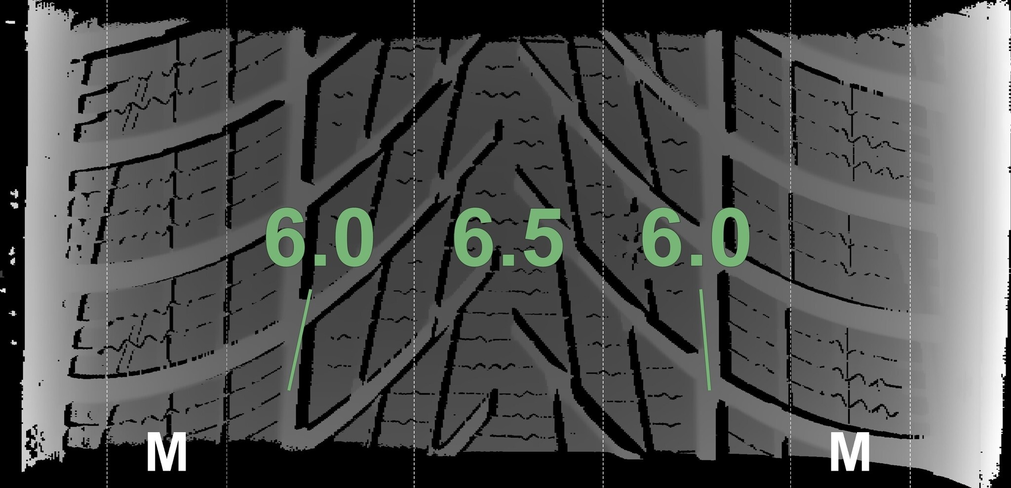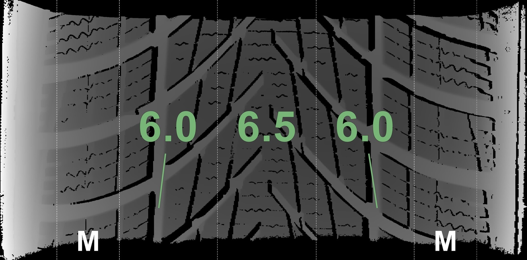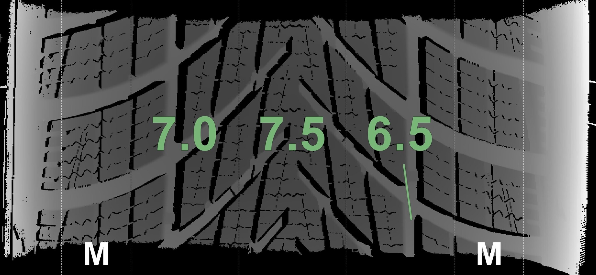 De gemeten profieldieptes en de details van de velgen zijn hierboven weergegeven.