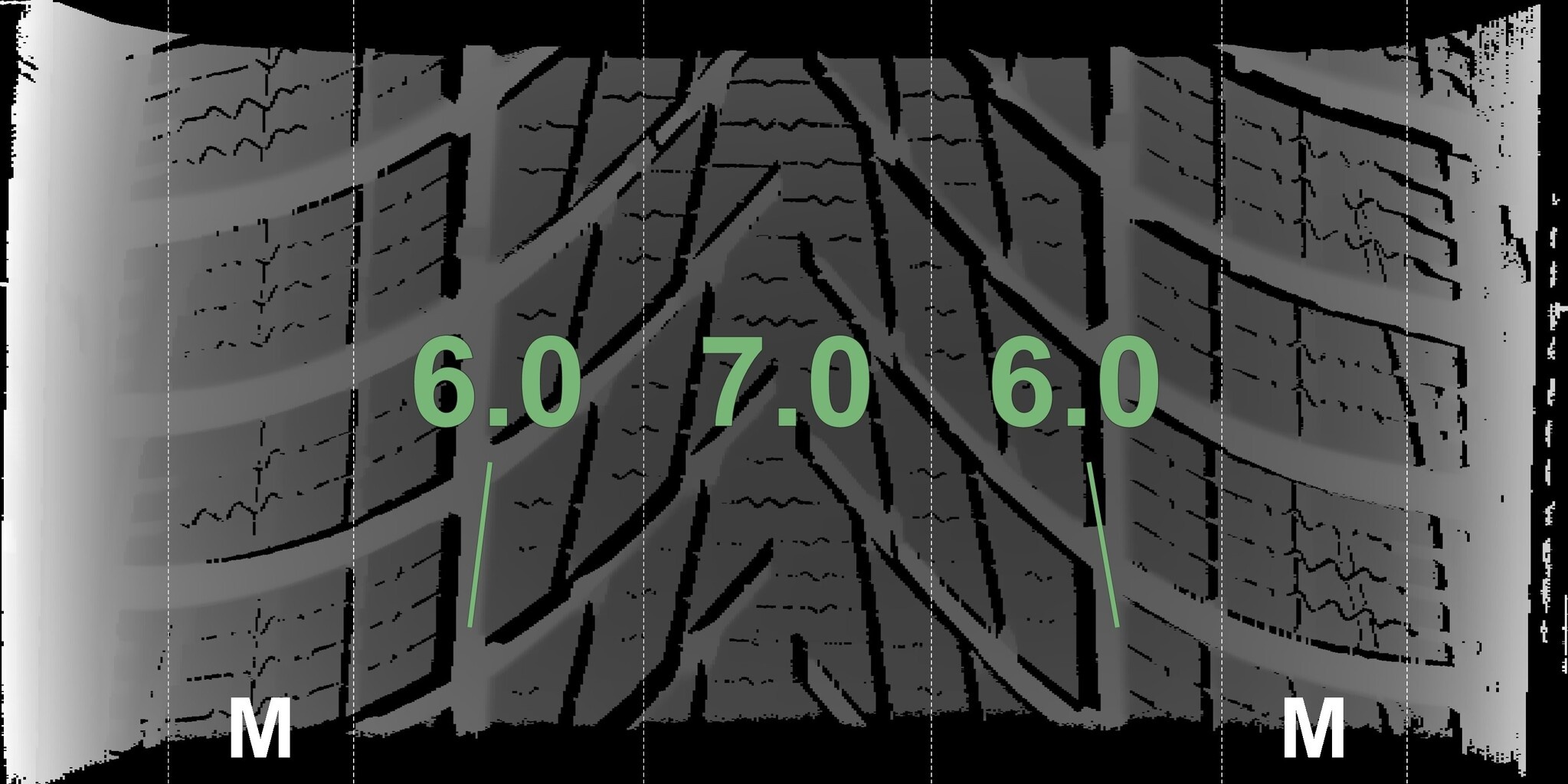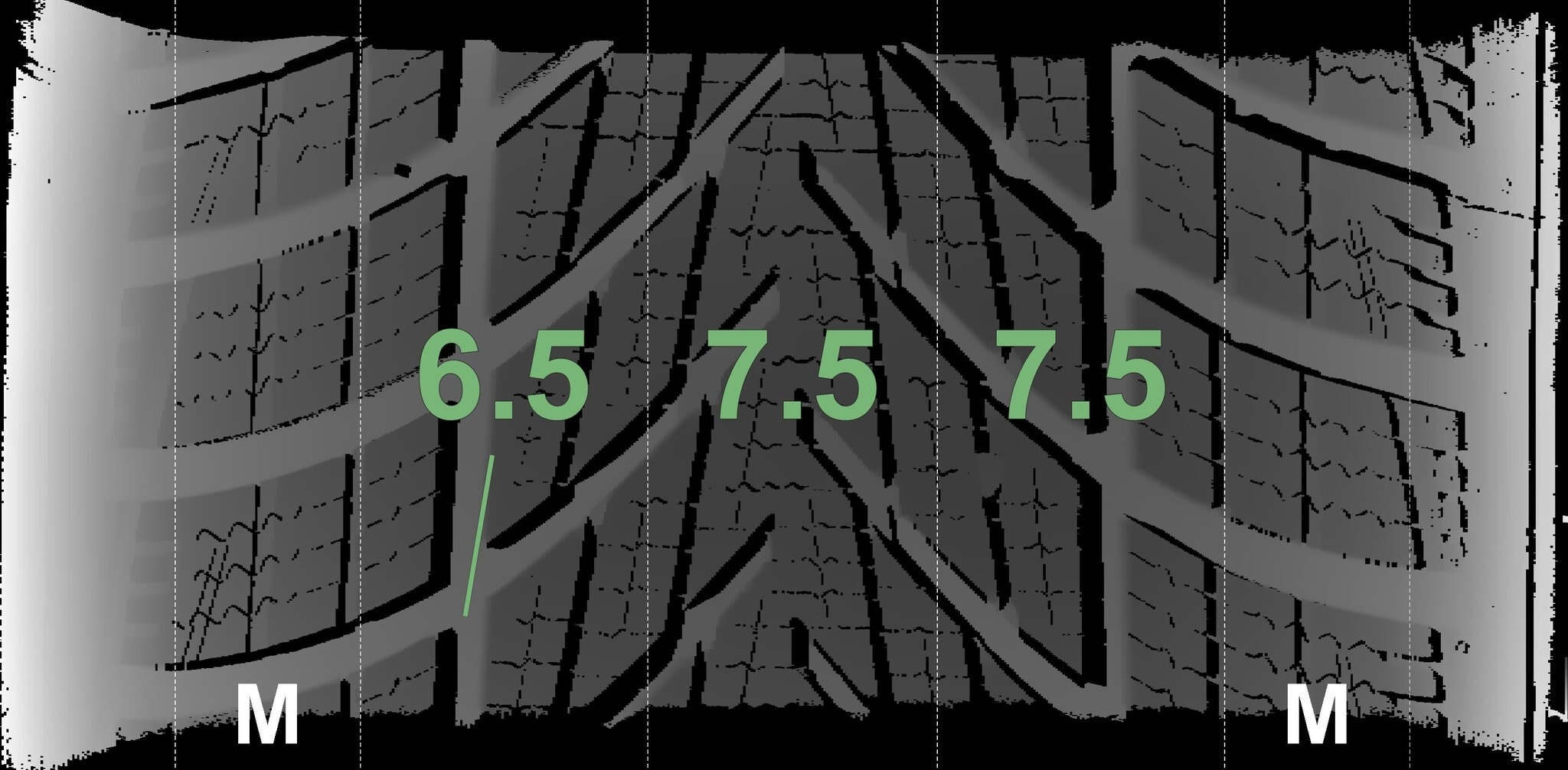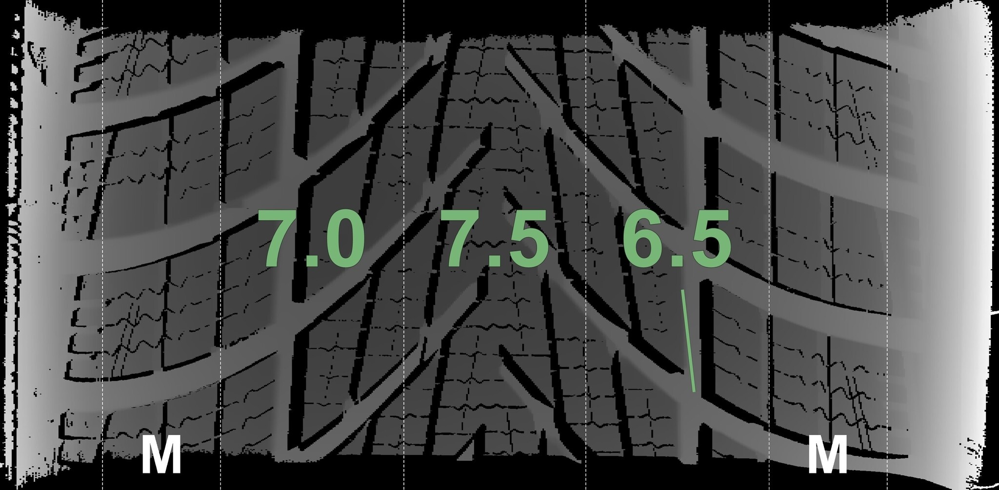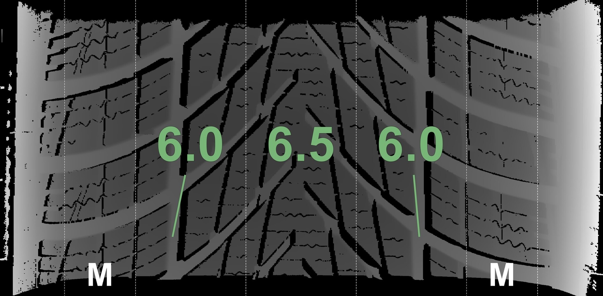 De gemeten profieldieptes en de details van de velgen zijn hierboven weergegeven.