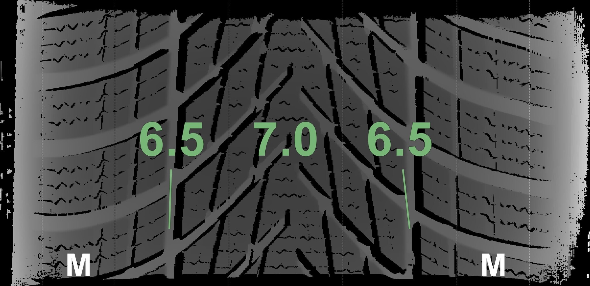 De gemeten profieldieptes en de details van de velgen zijn hierboven weergegeven.
