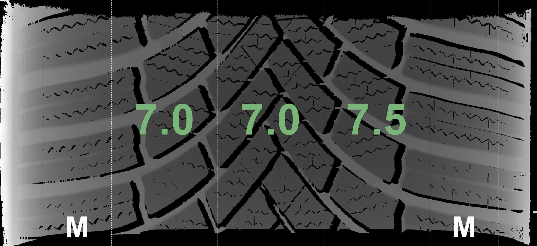 | Conditie | Profieldiepte | DOT | Links Achter | Gebruikt | 7.5 mm | 2525 |