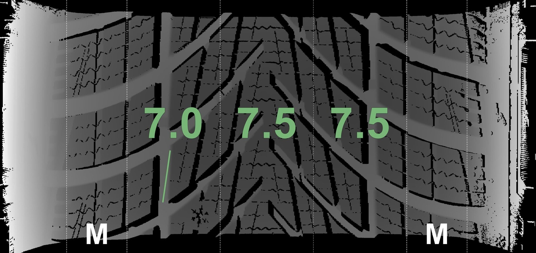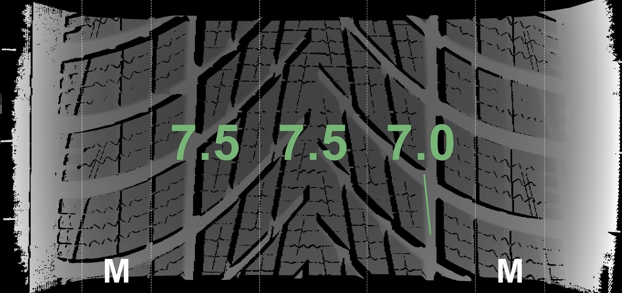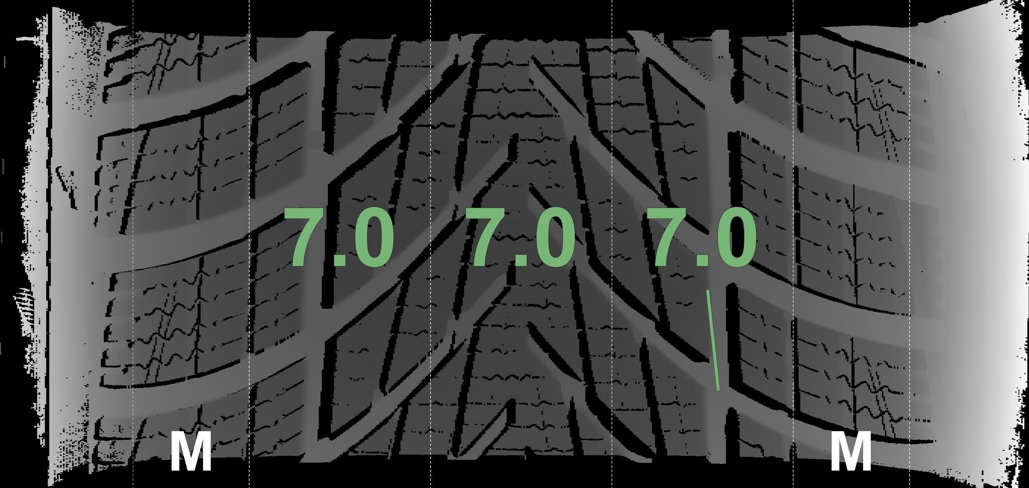 | Conditie | Profieldiepte | DOT | Rechts Achter | Demo nopjes nog zichtbaar | 7.0 mm | 3424 |