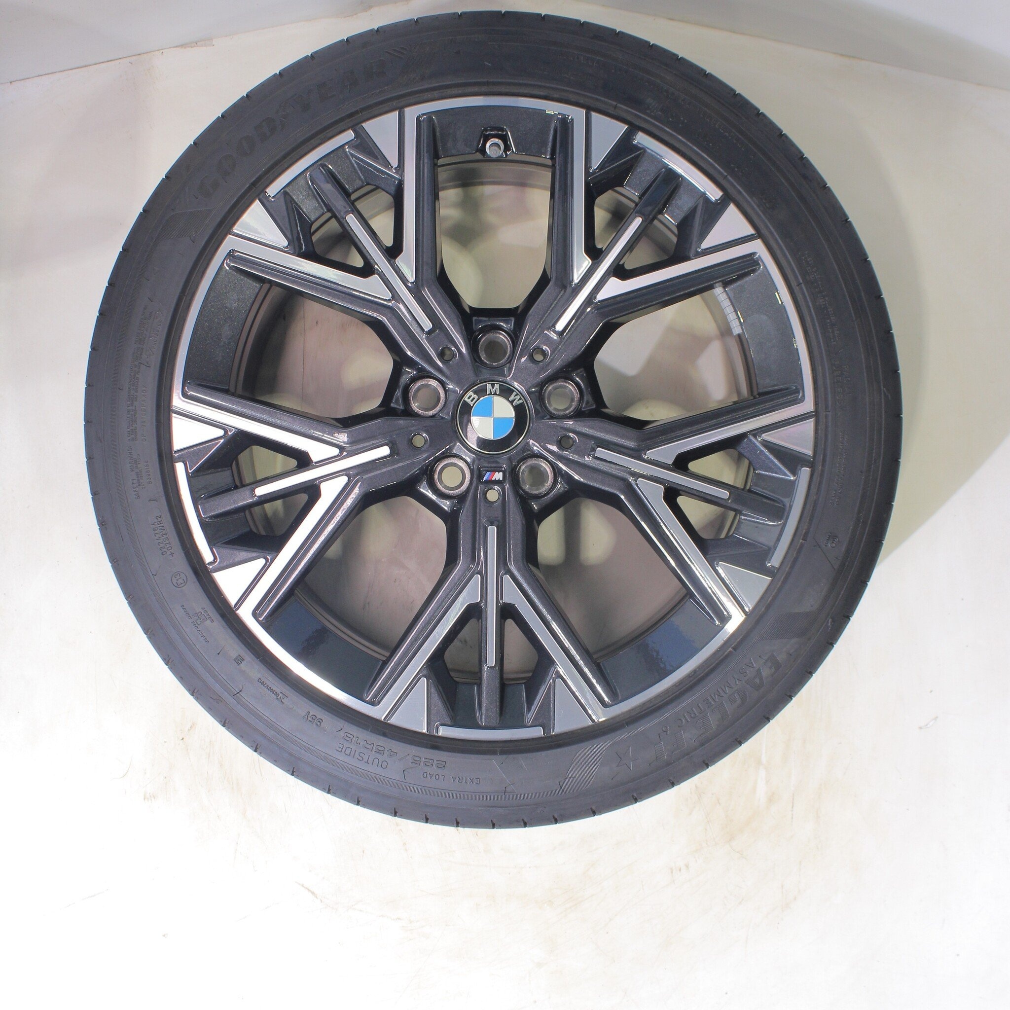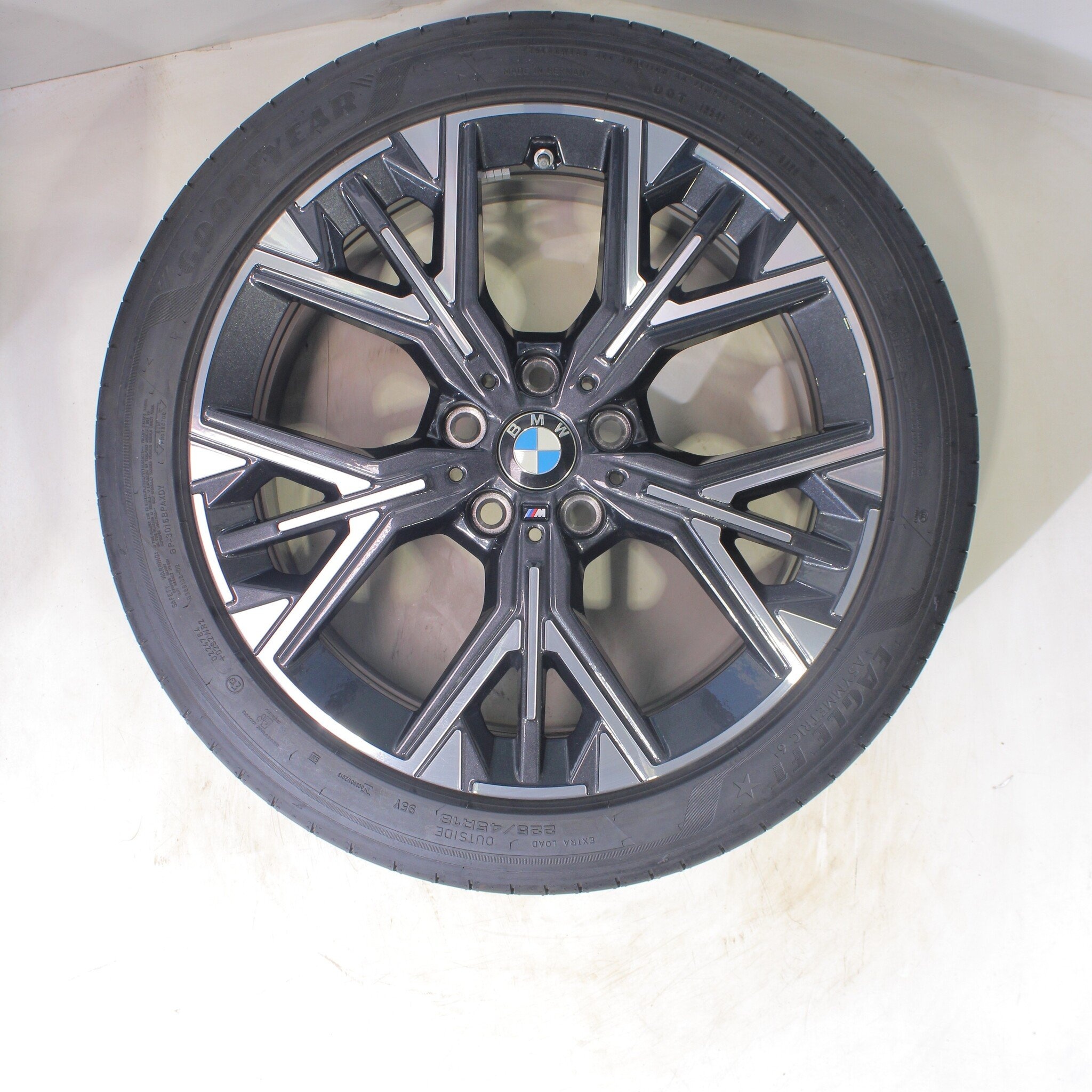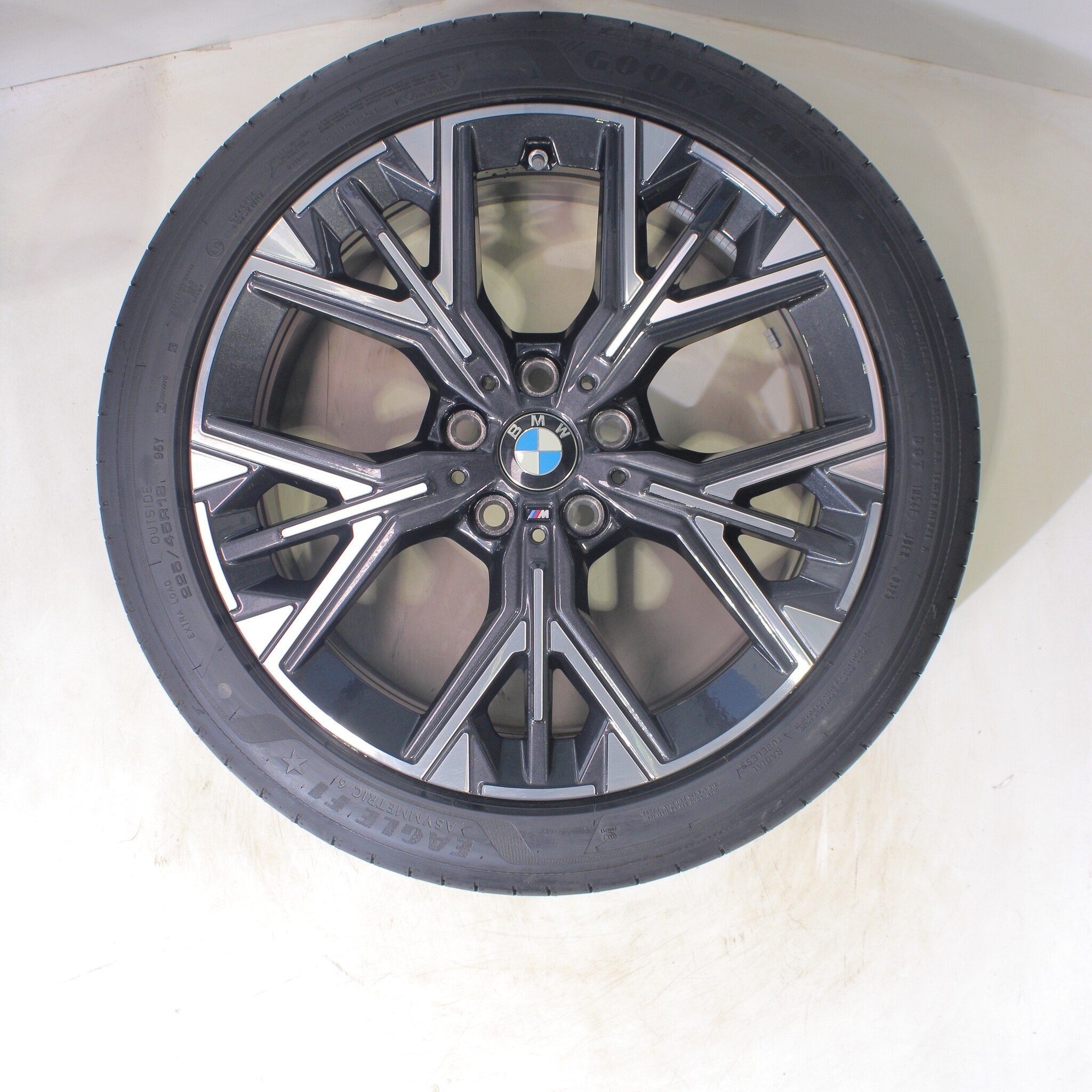 Originele wielset van BMW, styling 975M 18 inch velgen met Goodyear Eagle F1 Asymmetric 6 Zomerbanden. Deze velgen zijn originele velgen van het merk BMW en geschikt voor: BMW 1er F70.