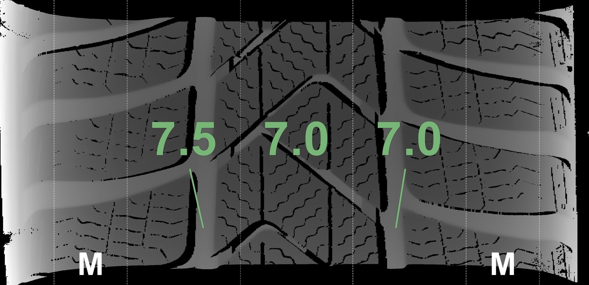 De gemeten profieldieptes en de details van de velgen zijn hierboven weergegeven.
