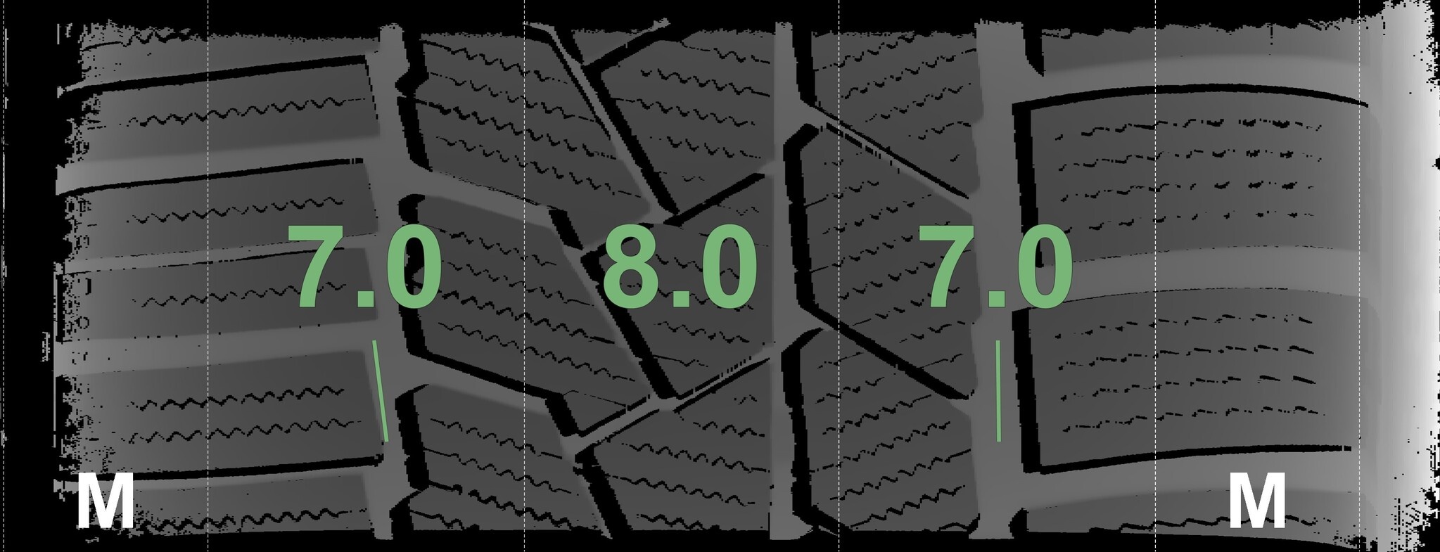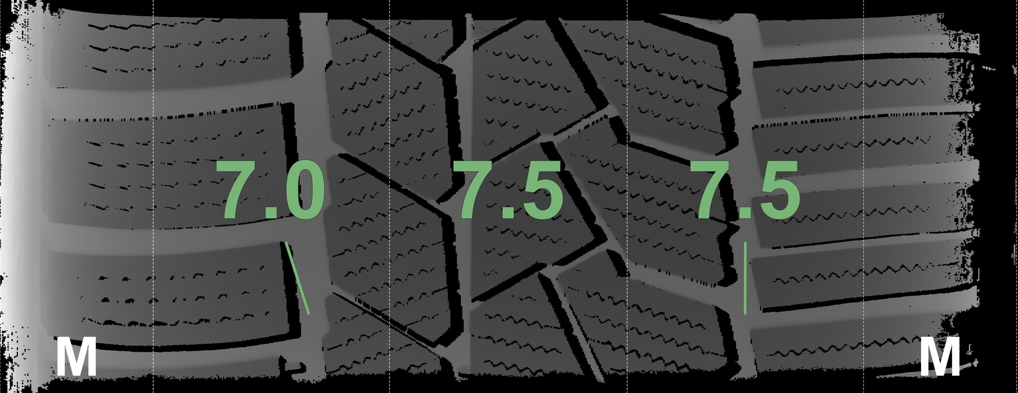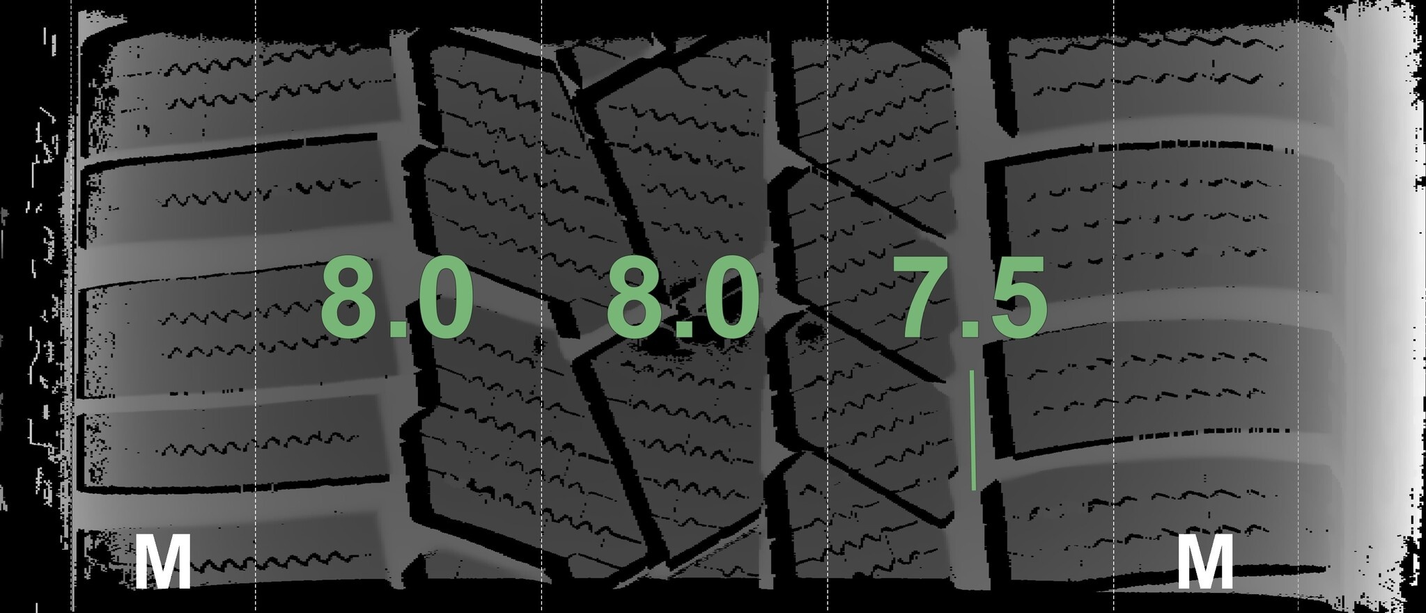 Conditie | Profieldiepte | DOT | Rechts Voor | Demo nopjes nog zichtbaar | 7.5 mm | 2624 |