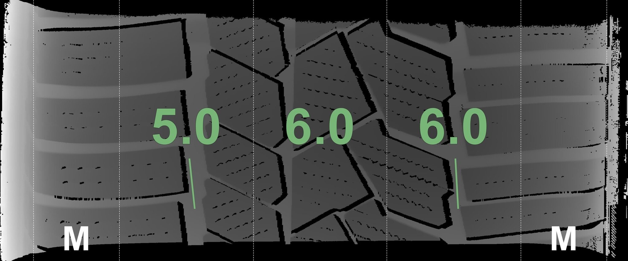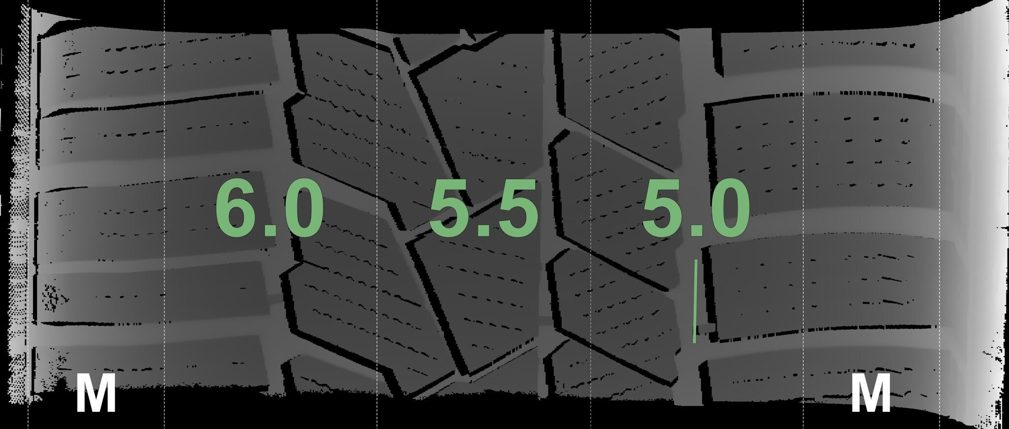 De gemeten profieldieptes en de details van de velgen zijn hierboven weergegeven.
