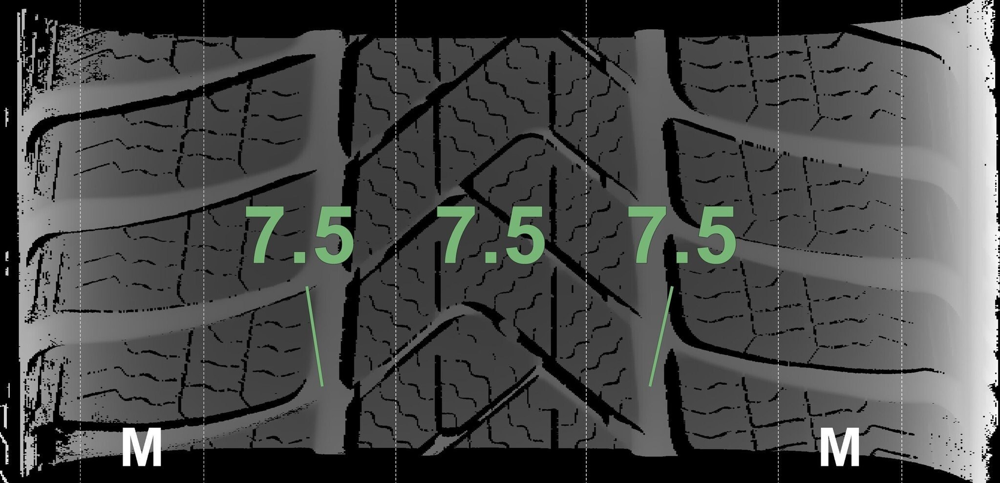 De gemeten profieldieptes en de details van de velgen zijn hierboven weergegeven.
