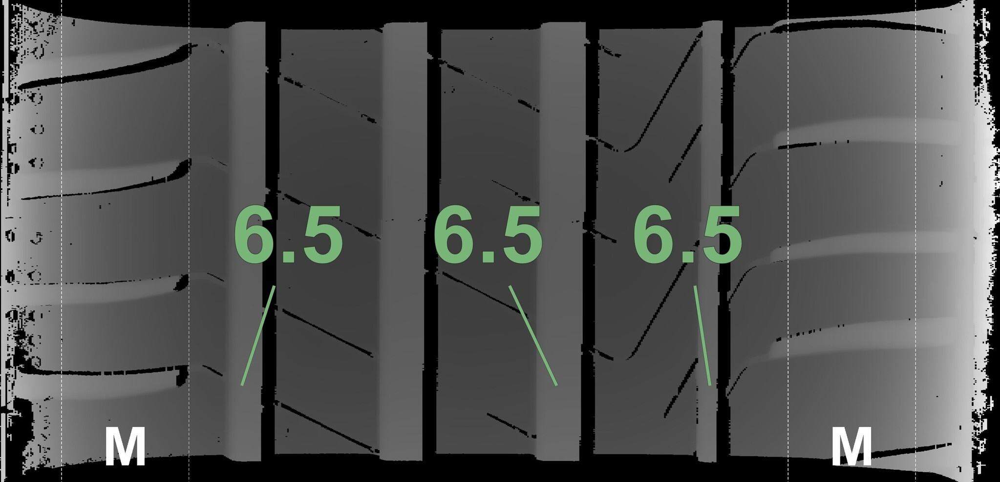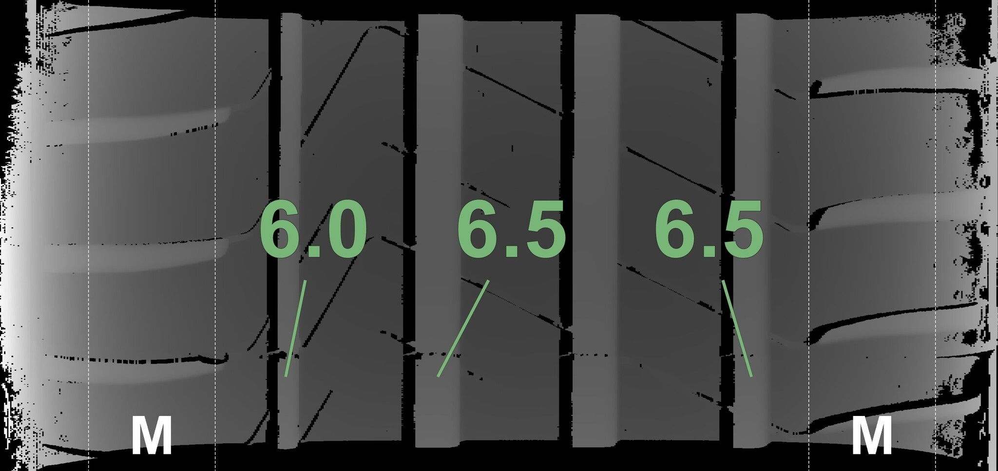 De gemeten profieldieptes en de details van de velgen zijn hierboven weergegeven.