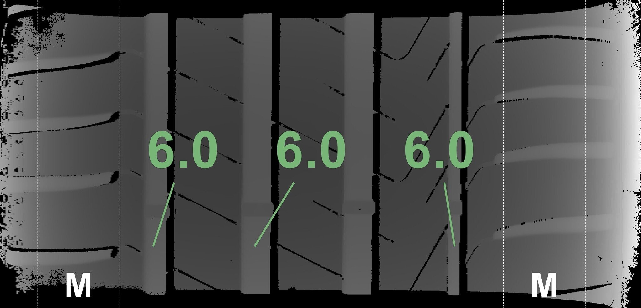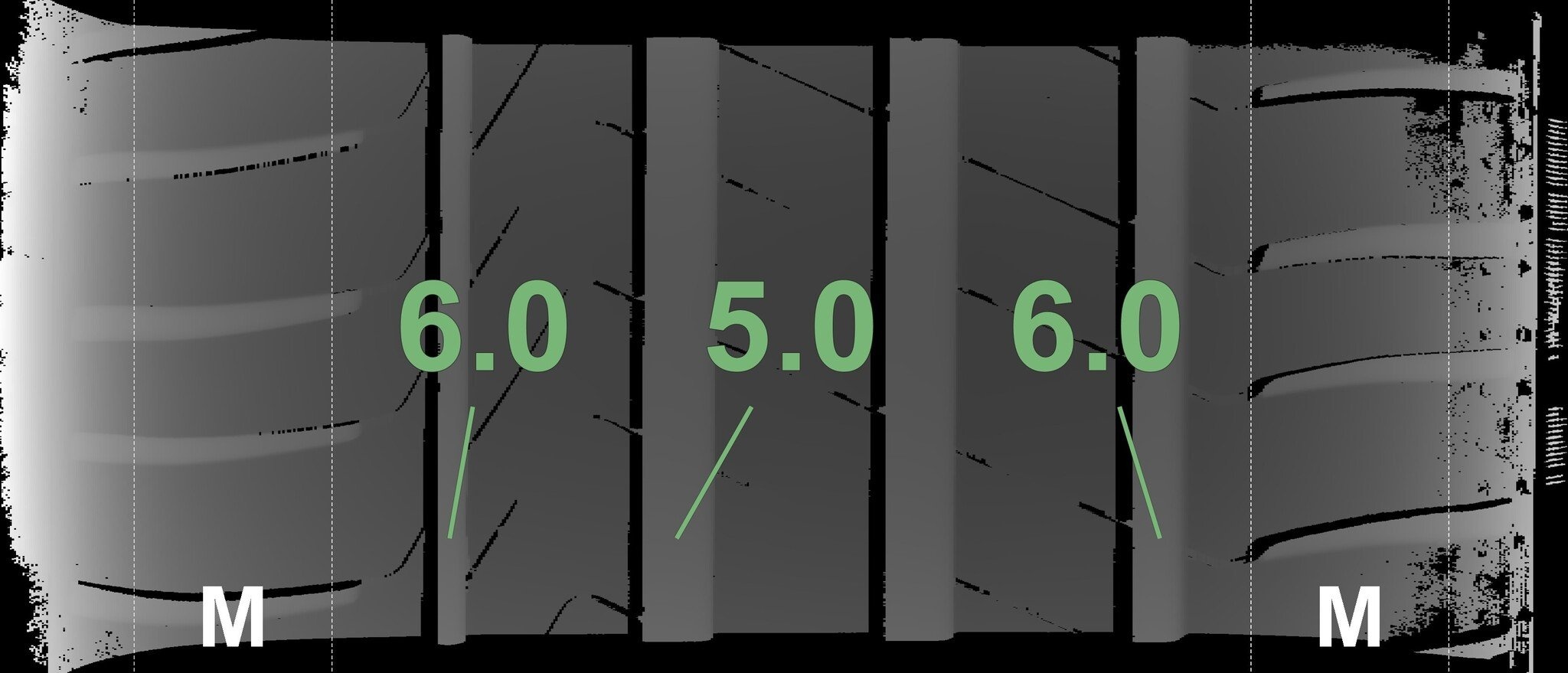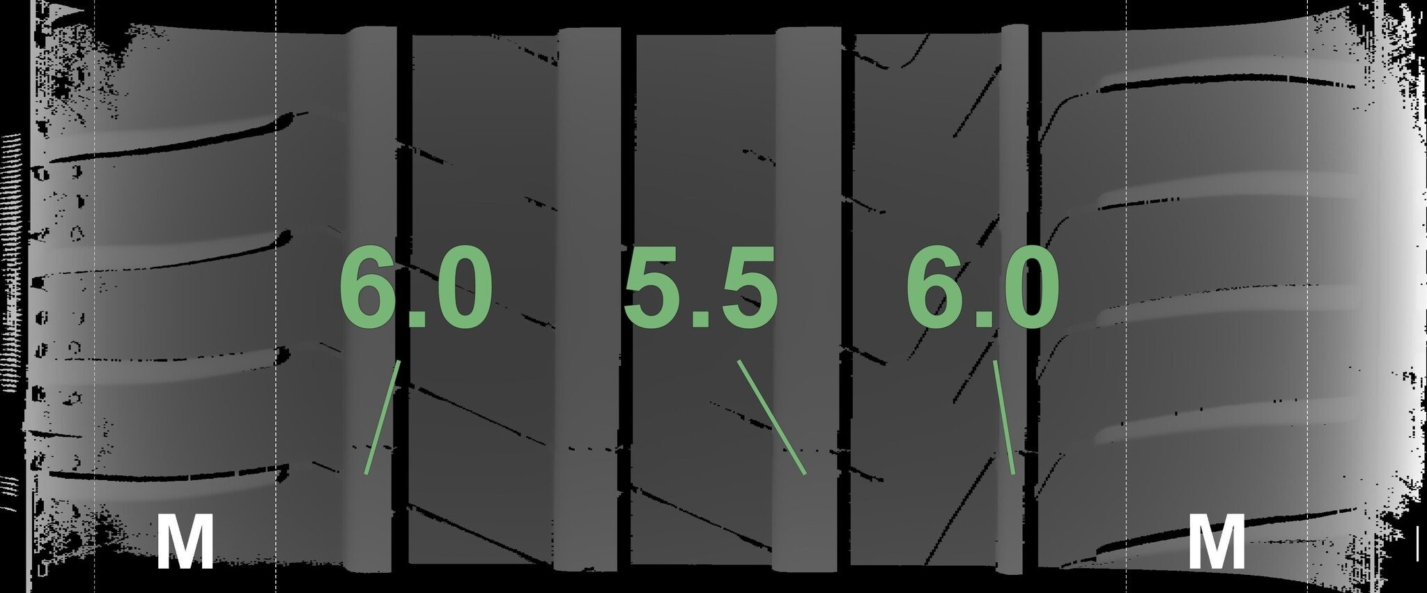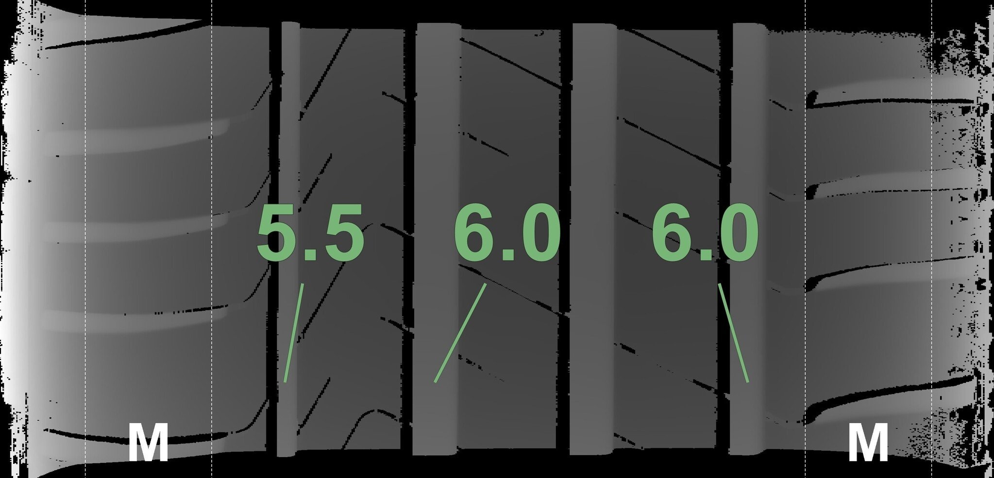 De gemeten profieldieptes en de details van de velgen zijn hierboven weergegeven.