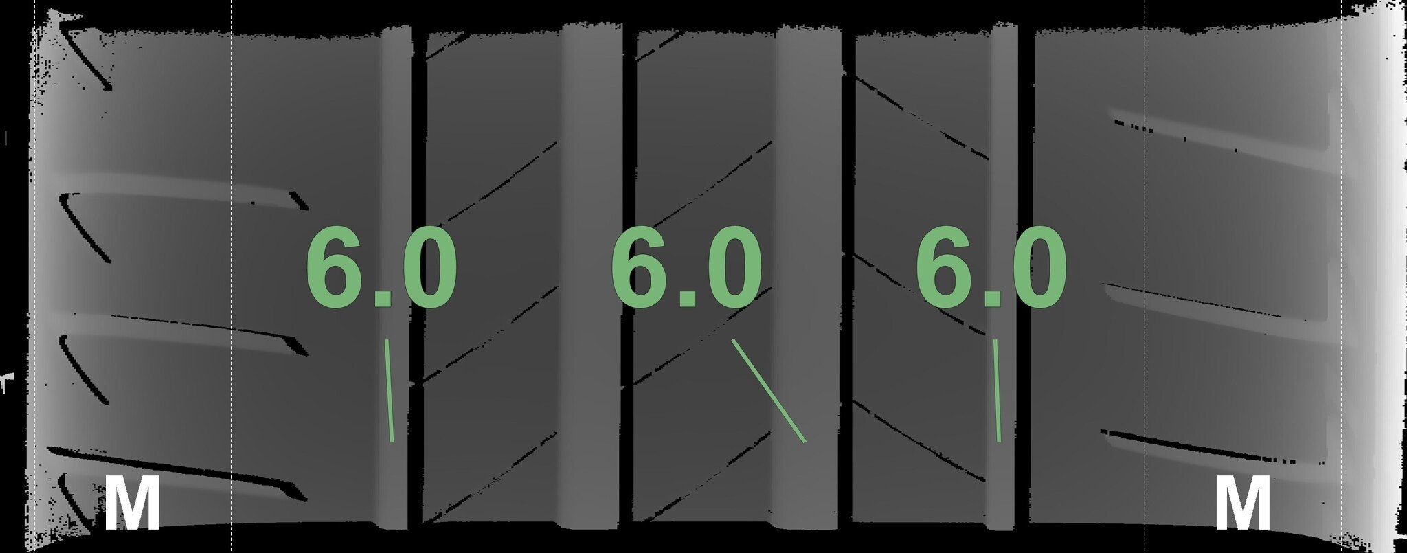 De gemeten profieldieptes en de details van de velgen zijn hierboven weergegeven.