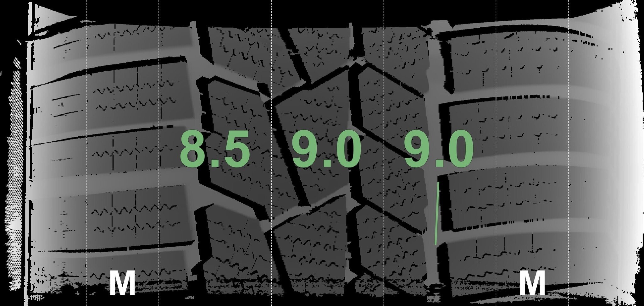 De gemeten profieldieptes en de details van de velgen zijn hierboven weergegeven.