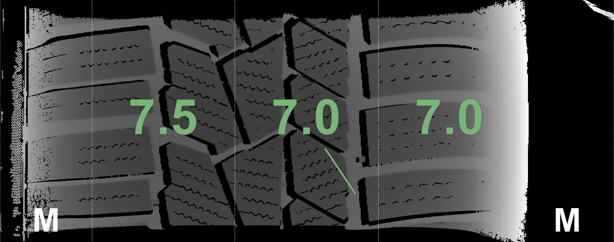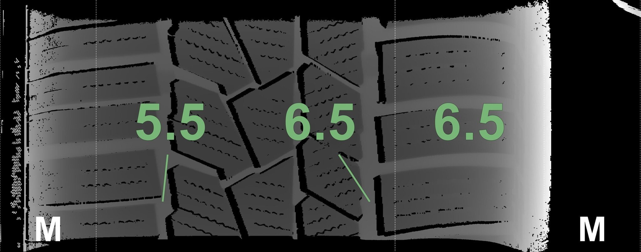 De gemeten profieldieptes en de details van de velgen zijn hierboven weergegeven.