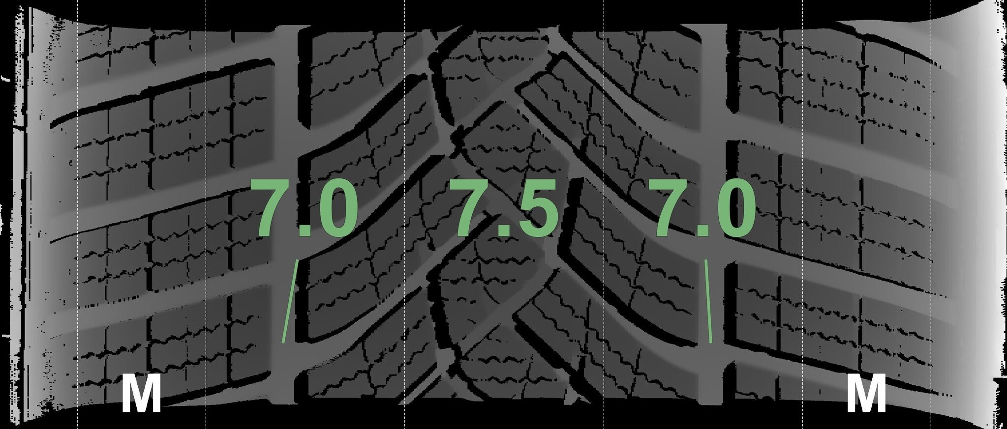 De gemeten profieldieptes en de details van de velgen zijn hierboven weergegeven.