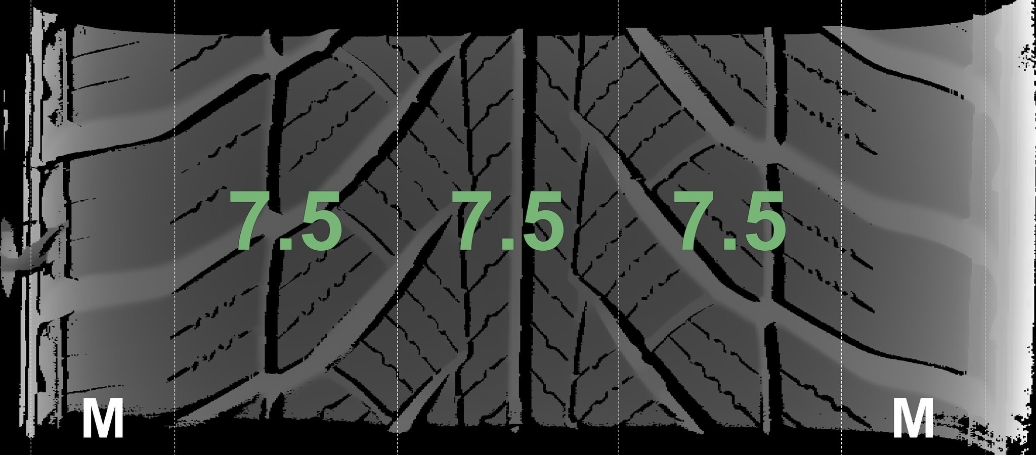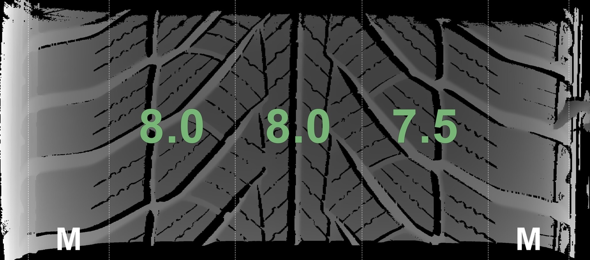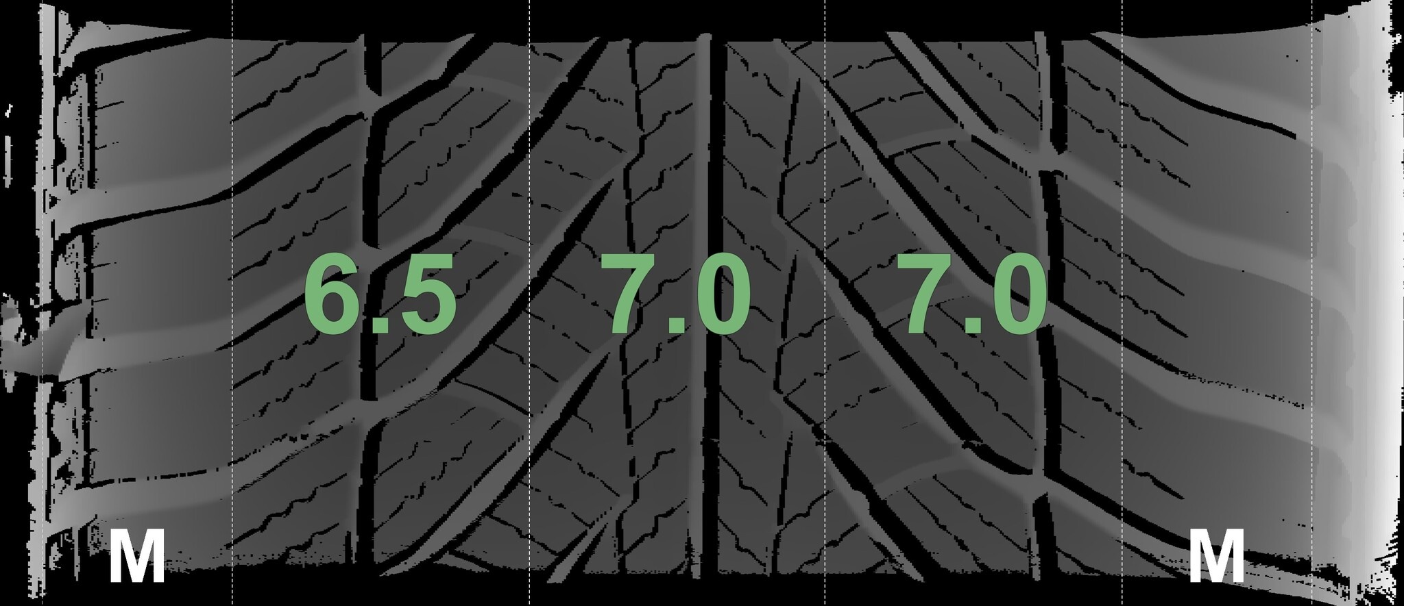 De gemeten profieldieptes en de details van de velgen zijn hierboven weergegeven.
