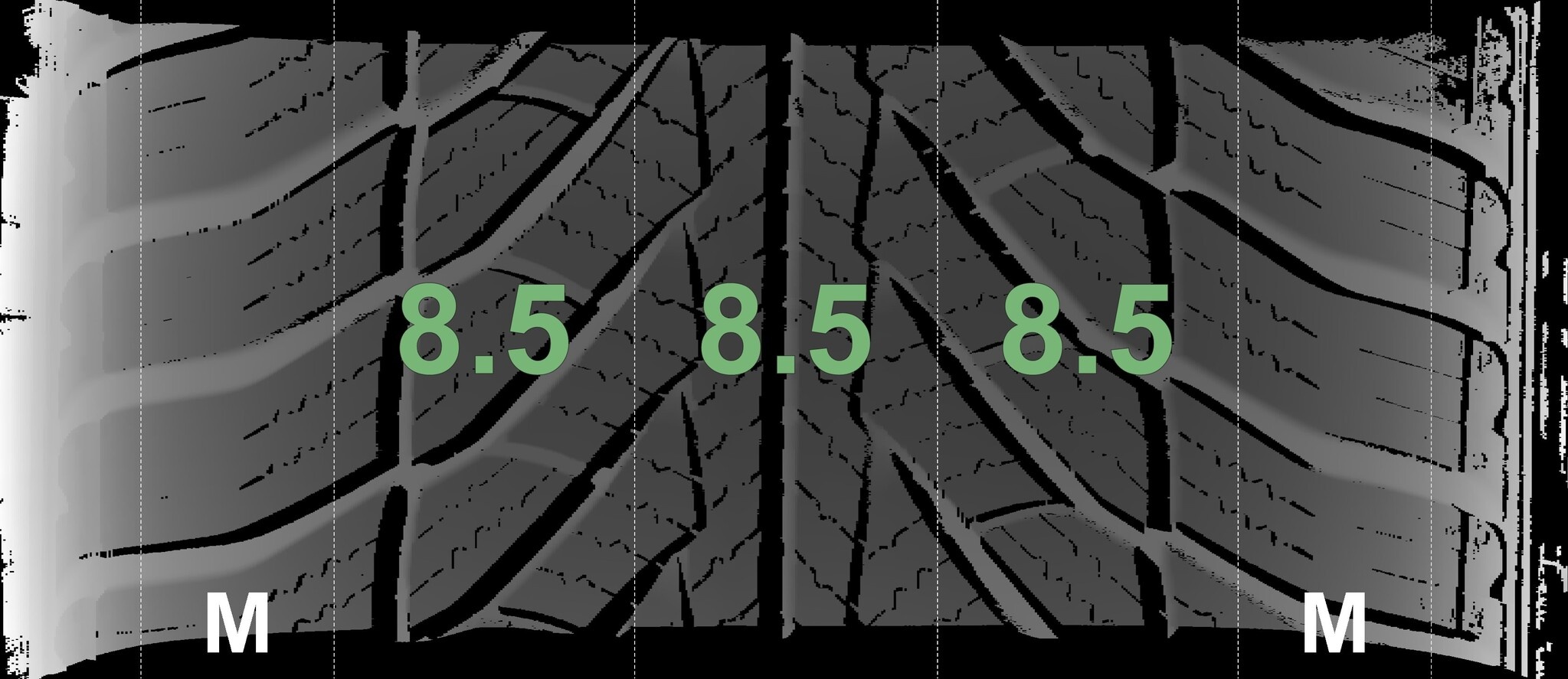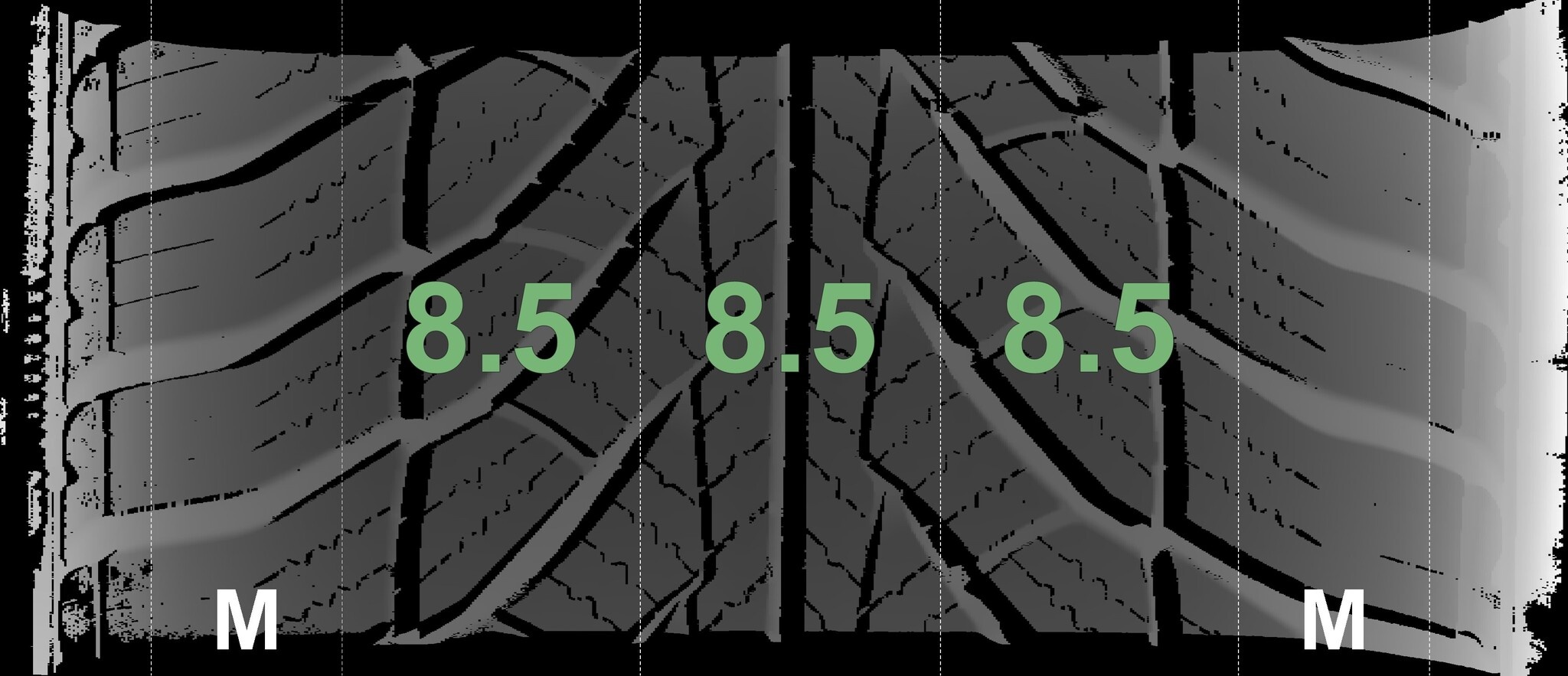 De gemeten profieldieptes en de details van de velgen zijn hierboven weergegeven.