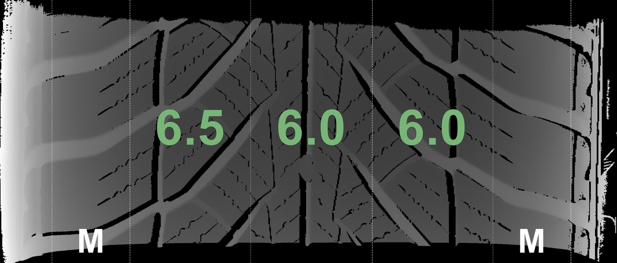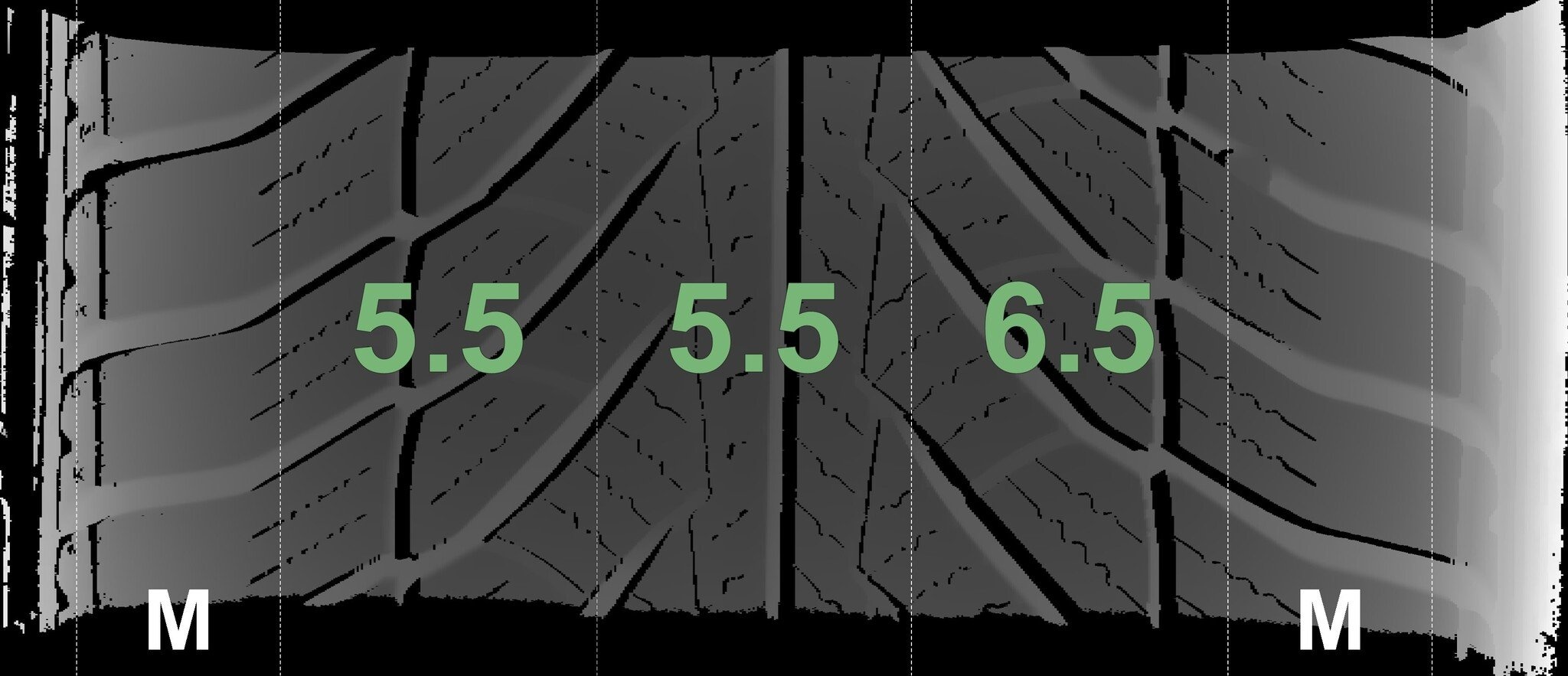 De gemeten profieldieptes en de details van de velgen zijn hierboven weergegeven.