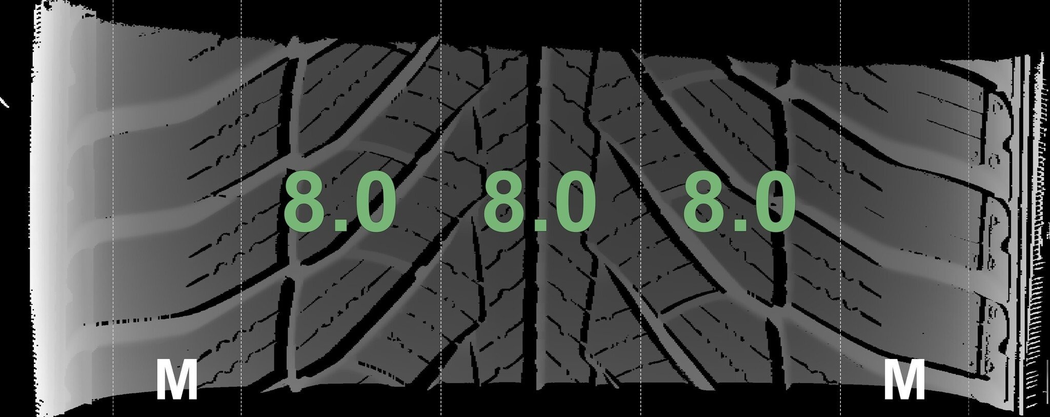 | Conditie | Profieldiepte | DOT | Links Achter | Gebruikt | 8.0 mm | 2821 |