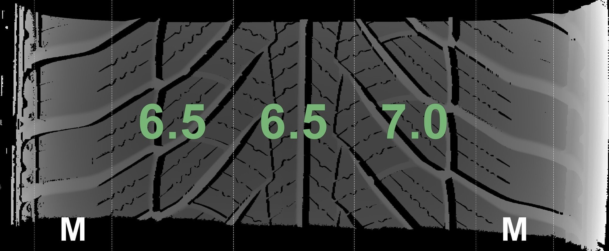 De gemeten profieldieptes en de details van de velgen zijn hierboven weergegeven.