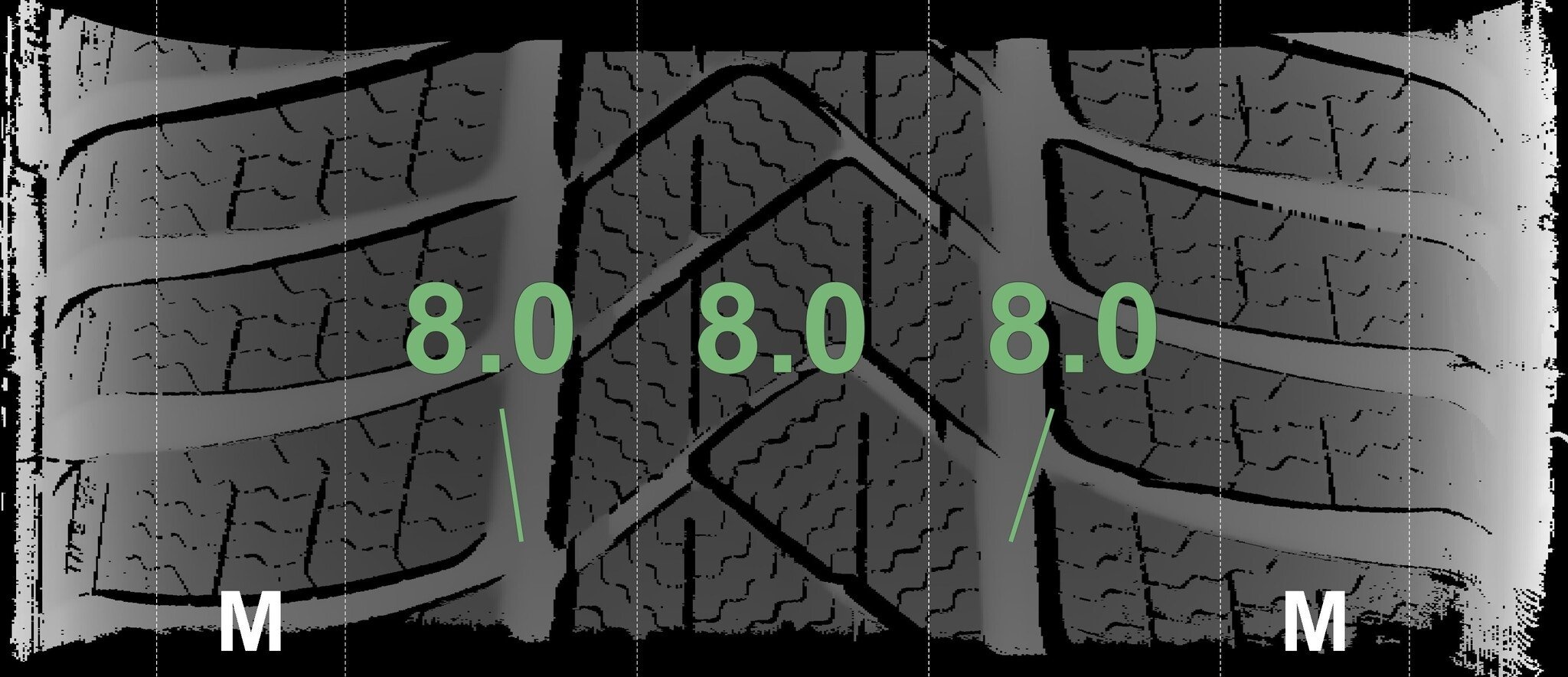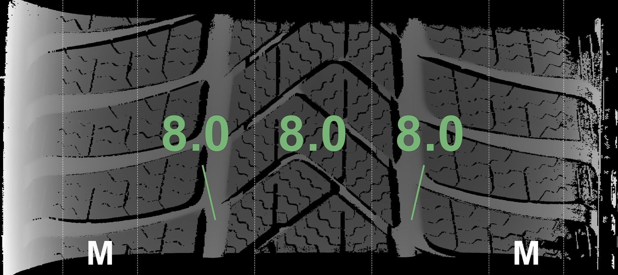 De gemeten profieldieptes en de details van de velgen zijn hierboven weergegeven.