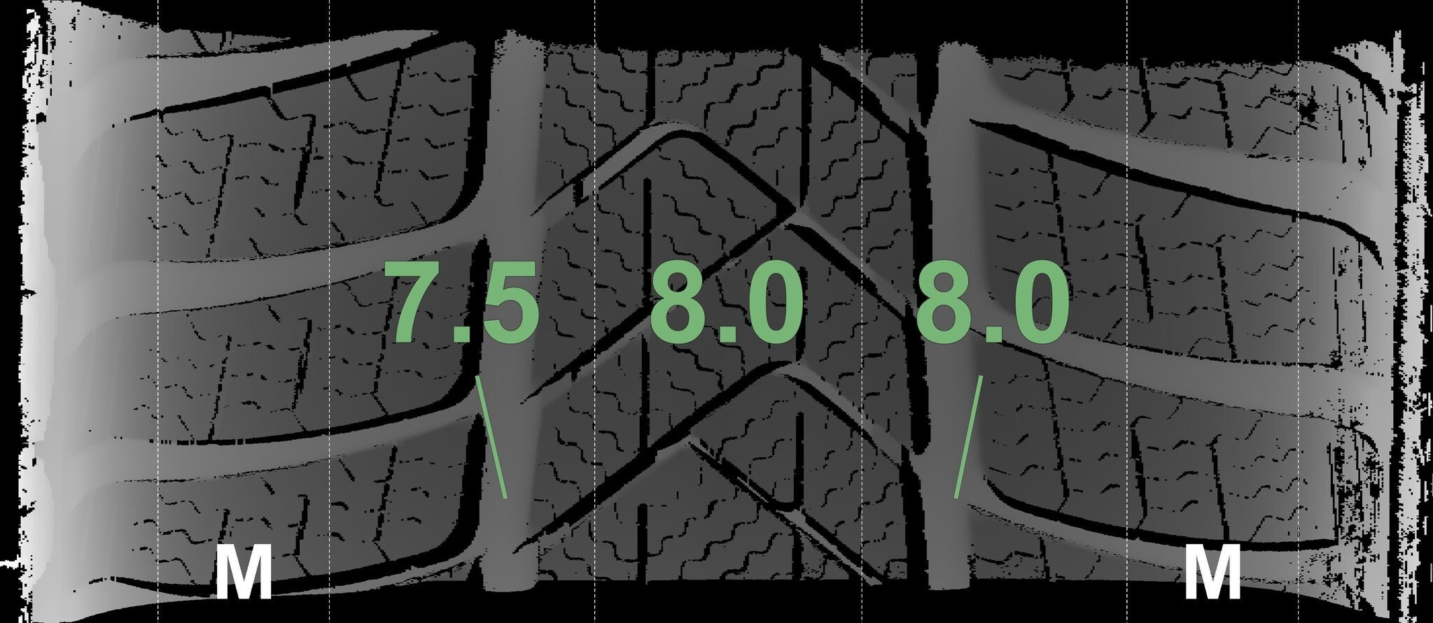 | Conditie | Profieldiepte | DOT | Rechts Voor | Nieuw | 7.5 mm | 3020 |