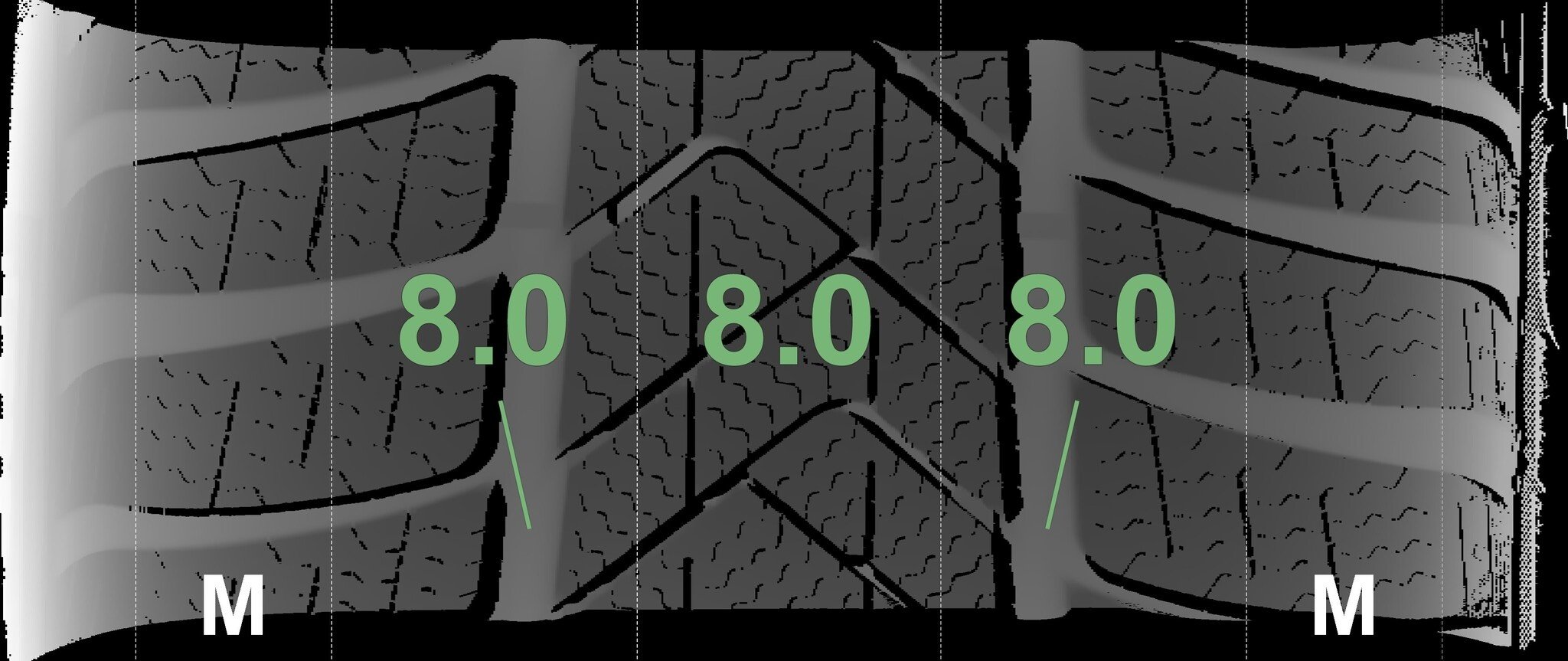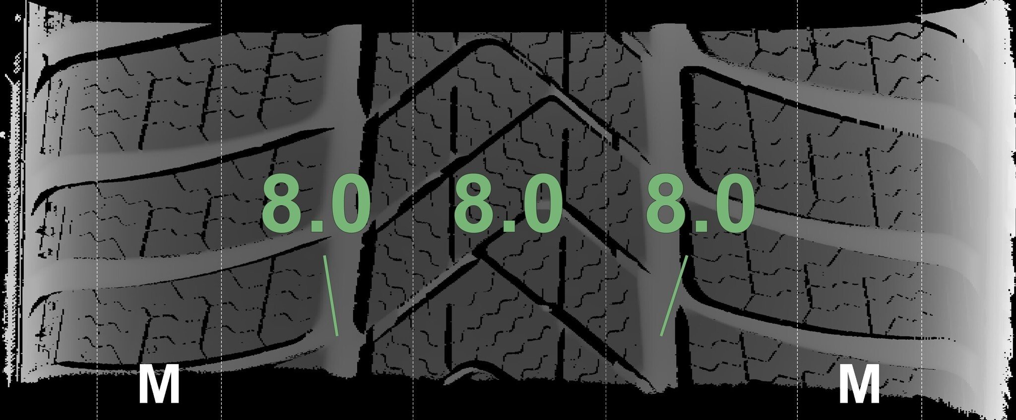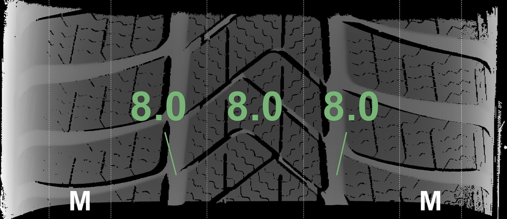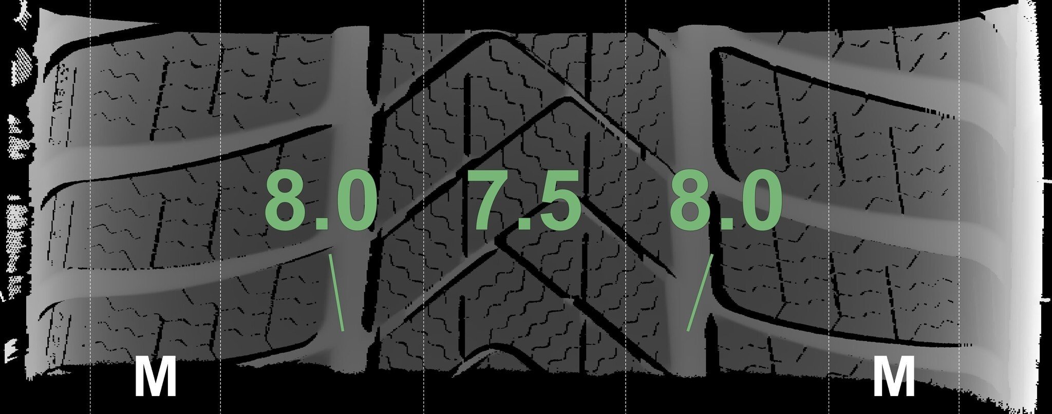 De gemeten profieldieptes en de details van de velgen zijn hierboven weergegeven.
