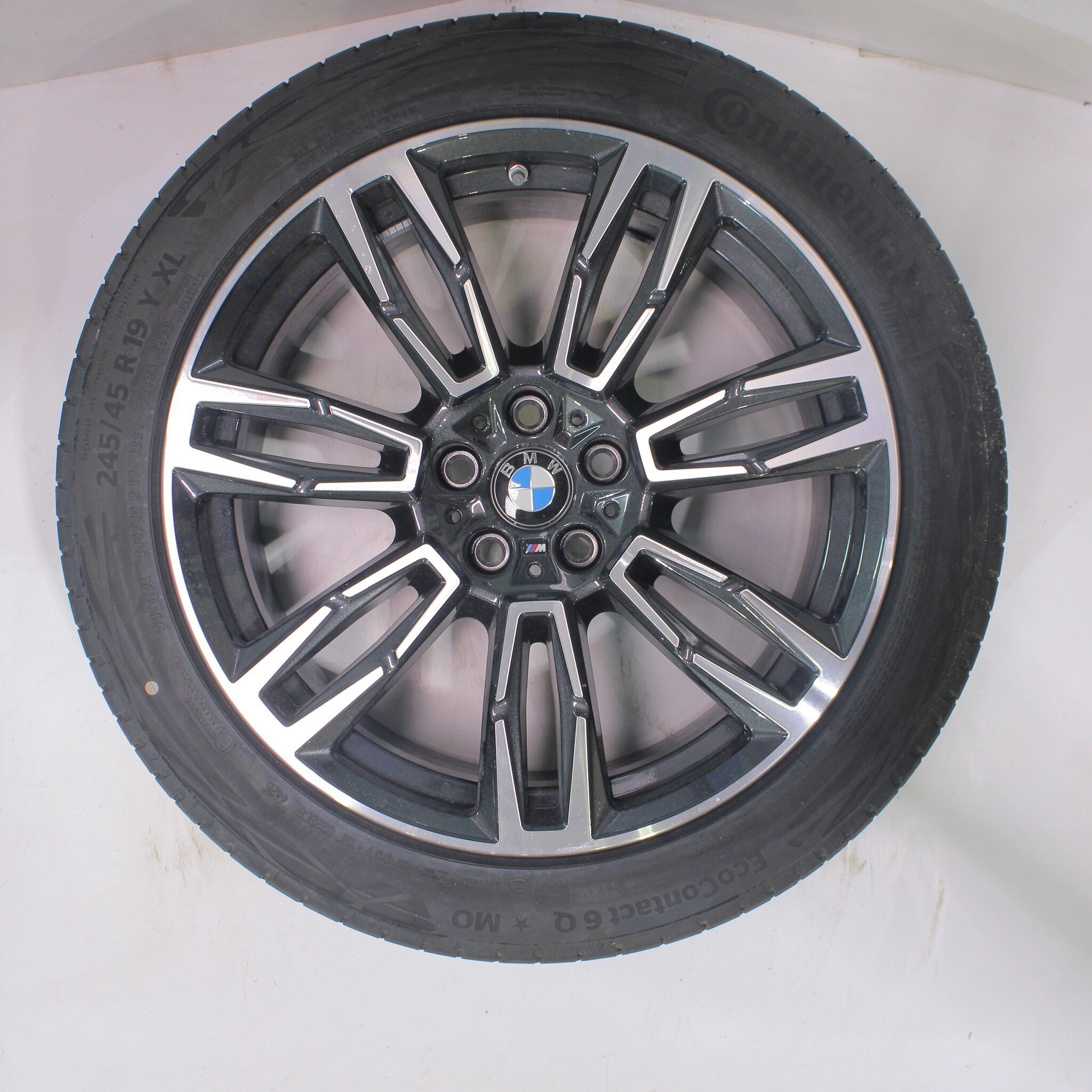 Originele wielset van BMW, styling 935M, 19 inch velgen met Continental Ecocontact6 Q Zomerbanden. Deze velgen zijn originele velgen van het merk BMW en geschikt voor: BMW 5 serie i5 G60 G61.