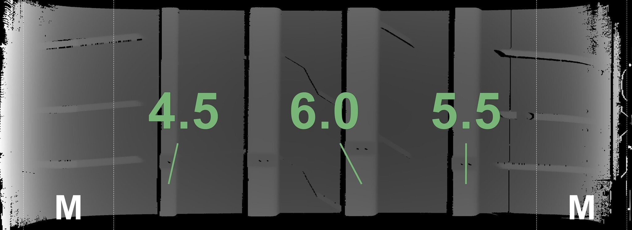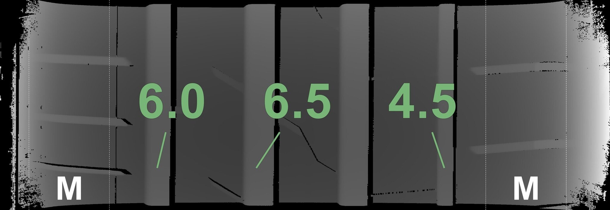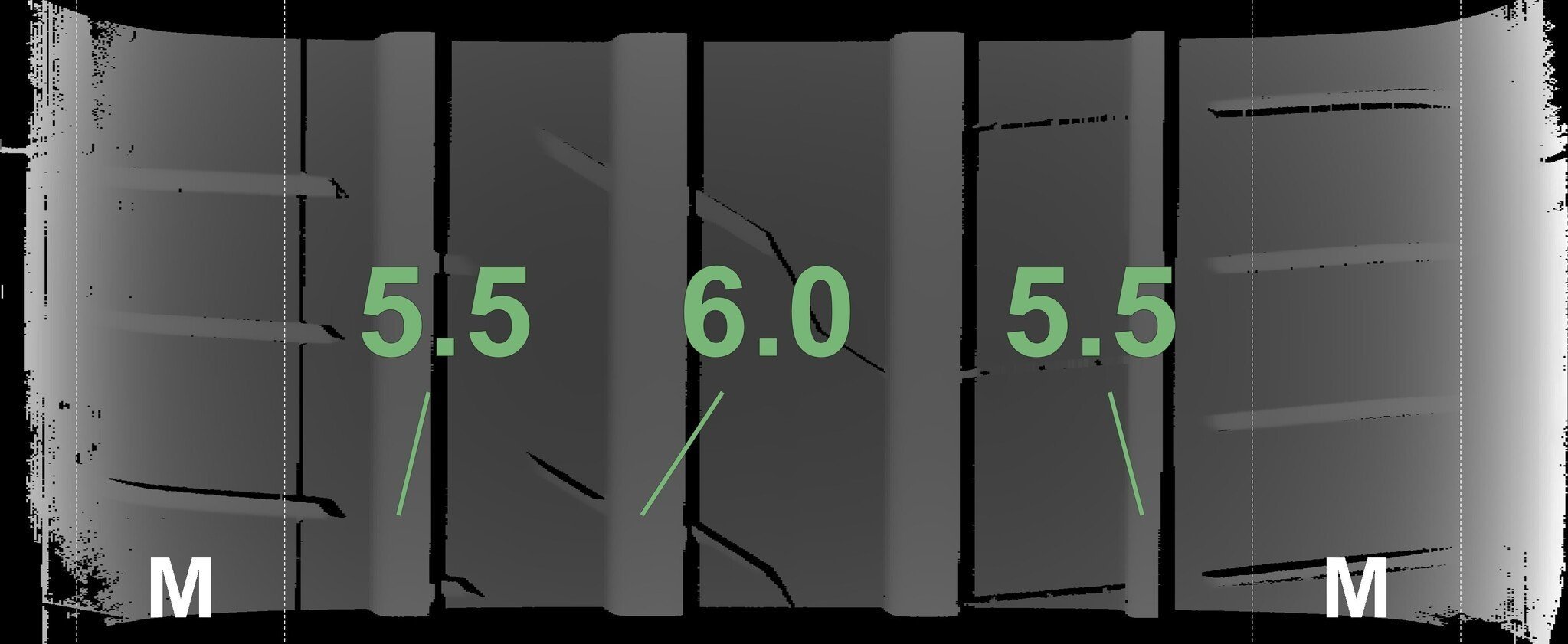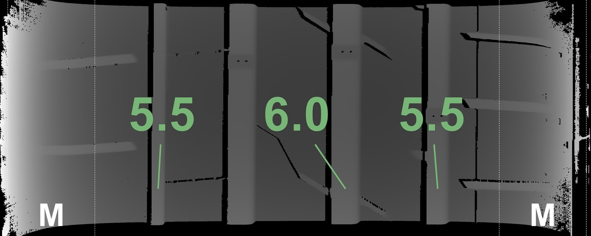 De gemeten profieldieptes en de details van de velgen zijn hierboven weergegeven.