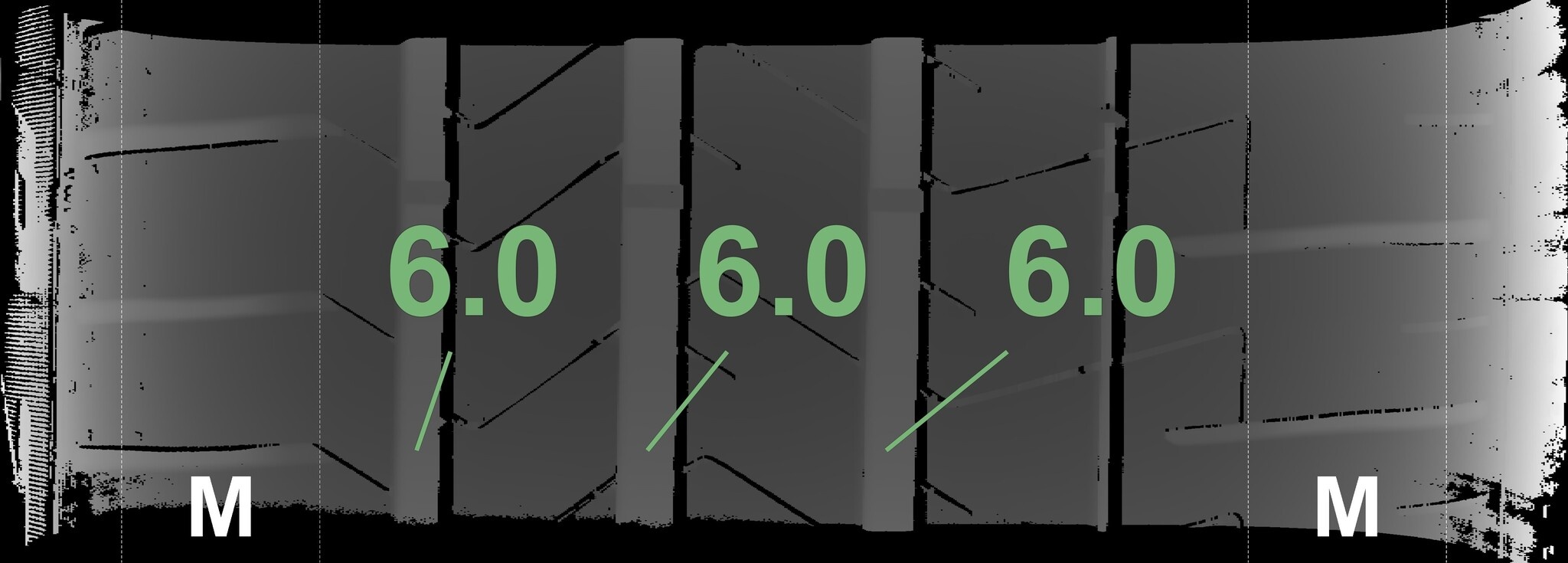 | Conditie | Profieldiepte | DOT | Rechts Achter | Demo nopjes nog zichtbaar | 6.0 mm | 1725 |