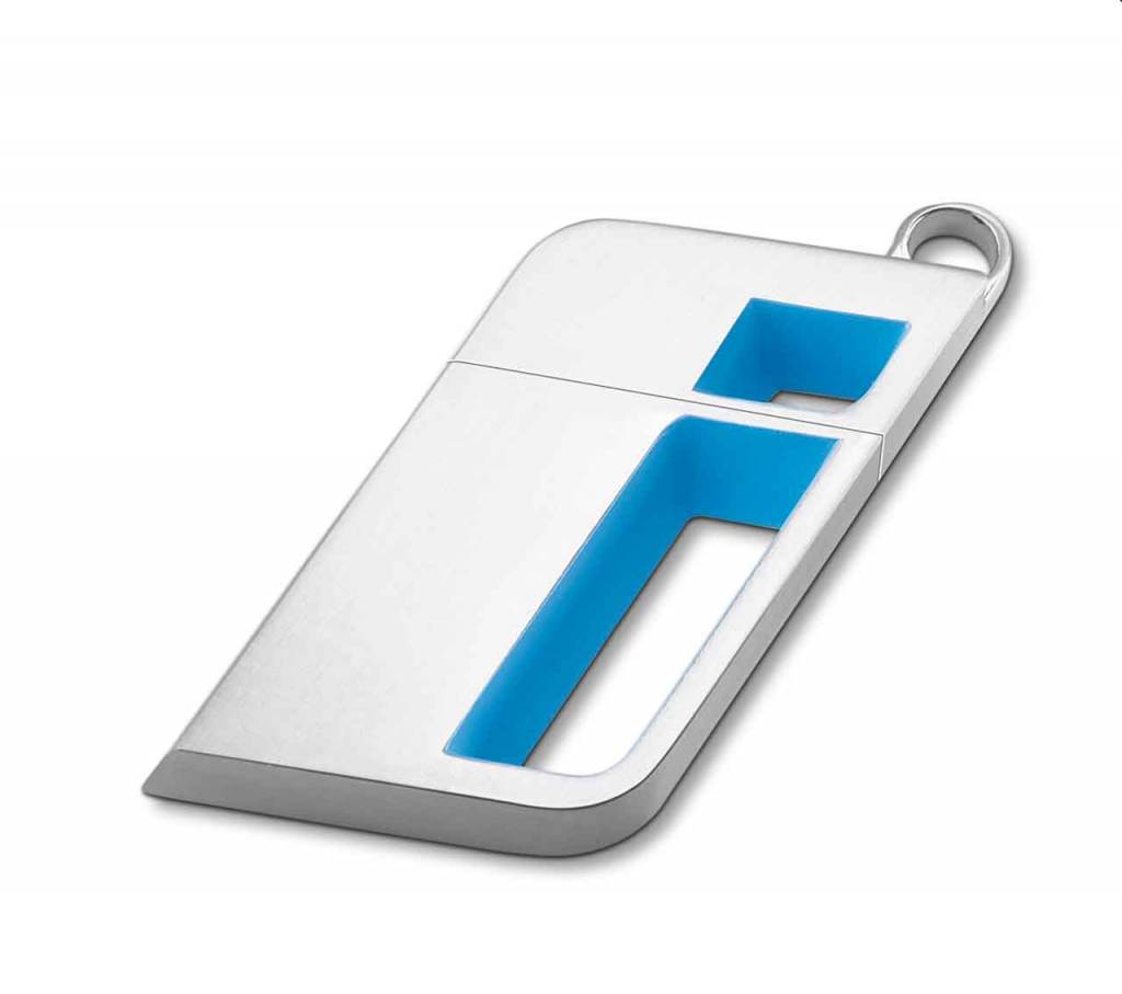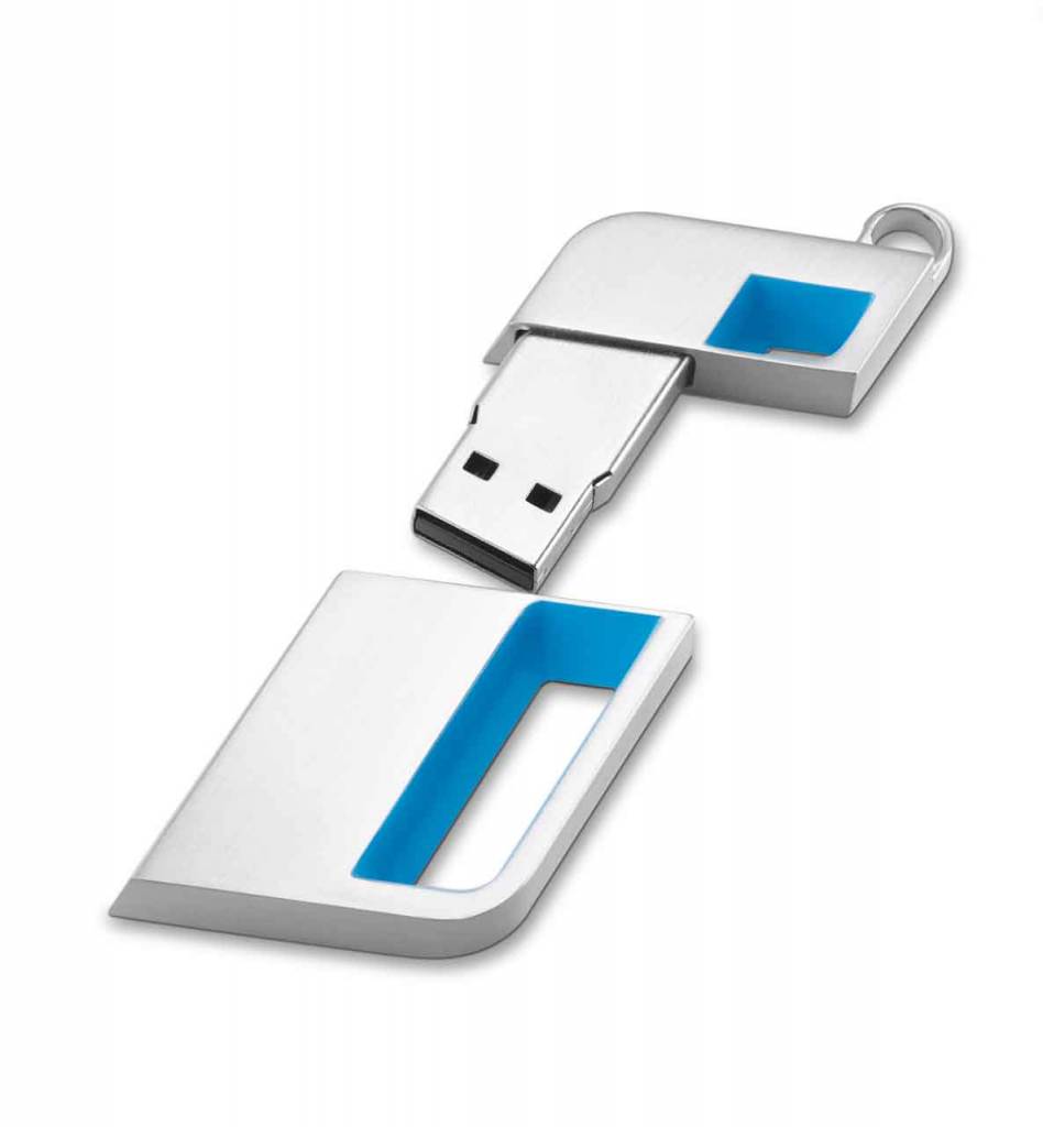 BMW i USB-stick in zink met alu coating. Geïntegreerd BMW i logo met kleuraccent in