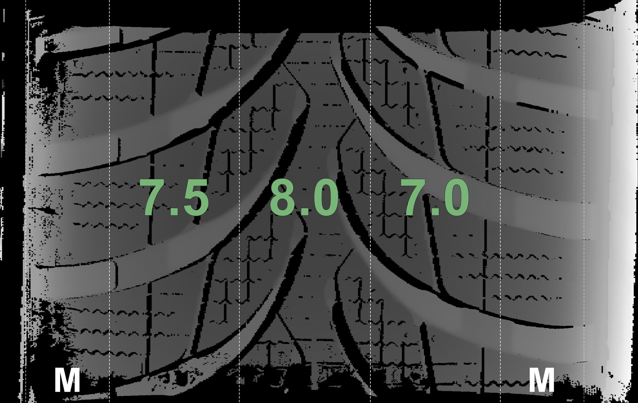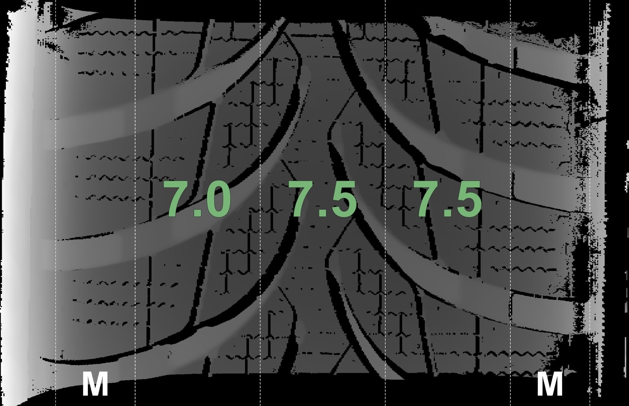 De gemeten profieldieptes en de details van de velgen zijn hierboven weergegeven.
