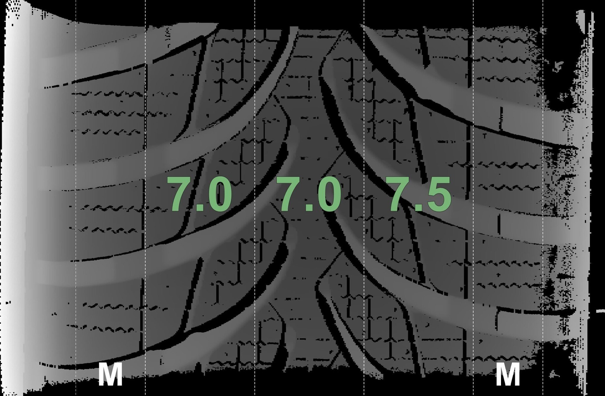 | Conditie | Profieldiepte | DOT | Rechts Voor | Nieuw | 7.0 mm | 3823 |