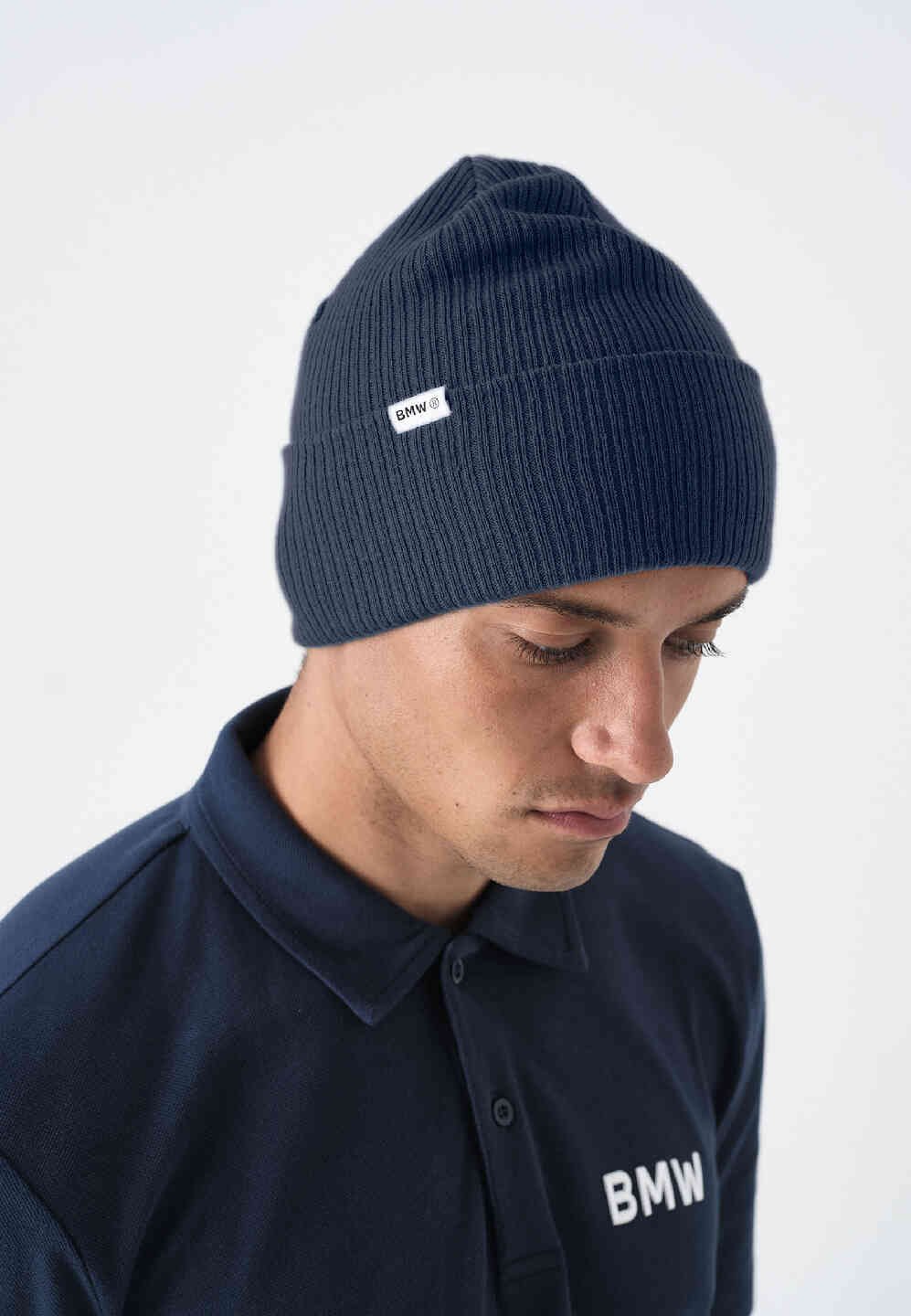 Modieuze muts van wol met omslag zoom, geribbeld breisel en subtiele BMW branding. Lees meer
