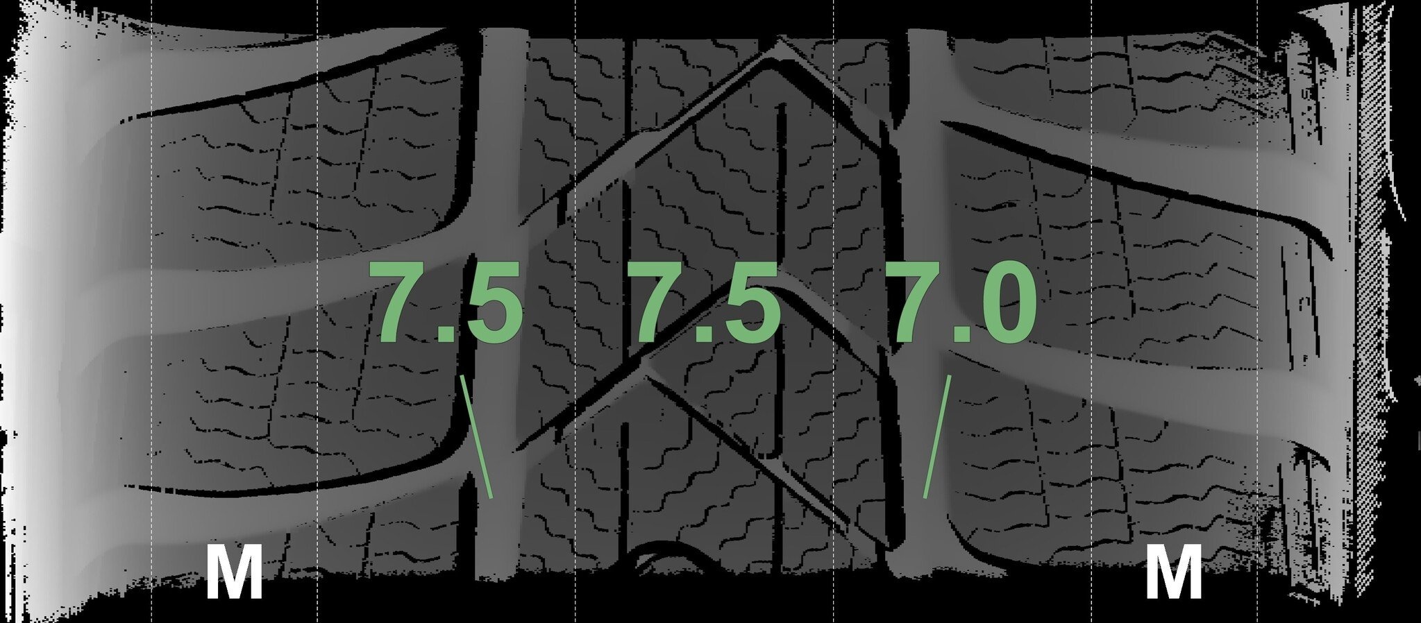 De gemeten profieldieptes en de details van de velgen zijn hierboven weergegeven.