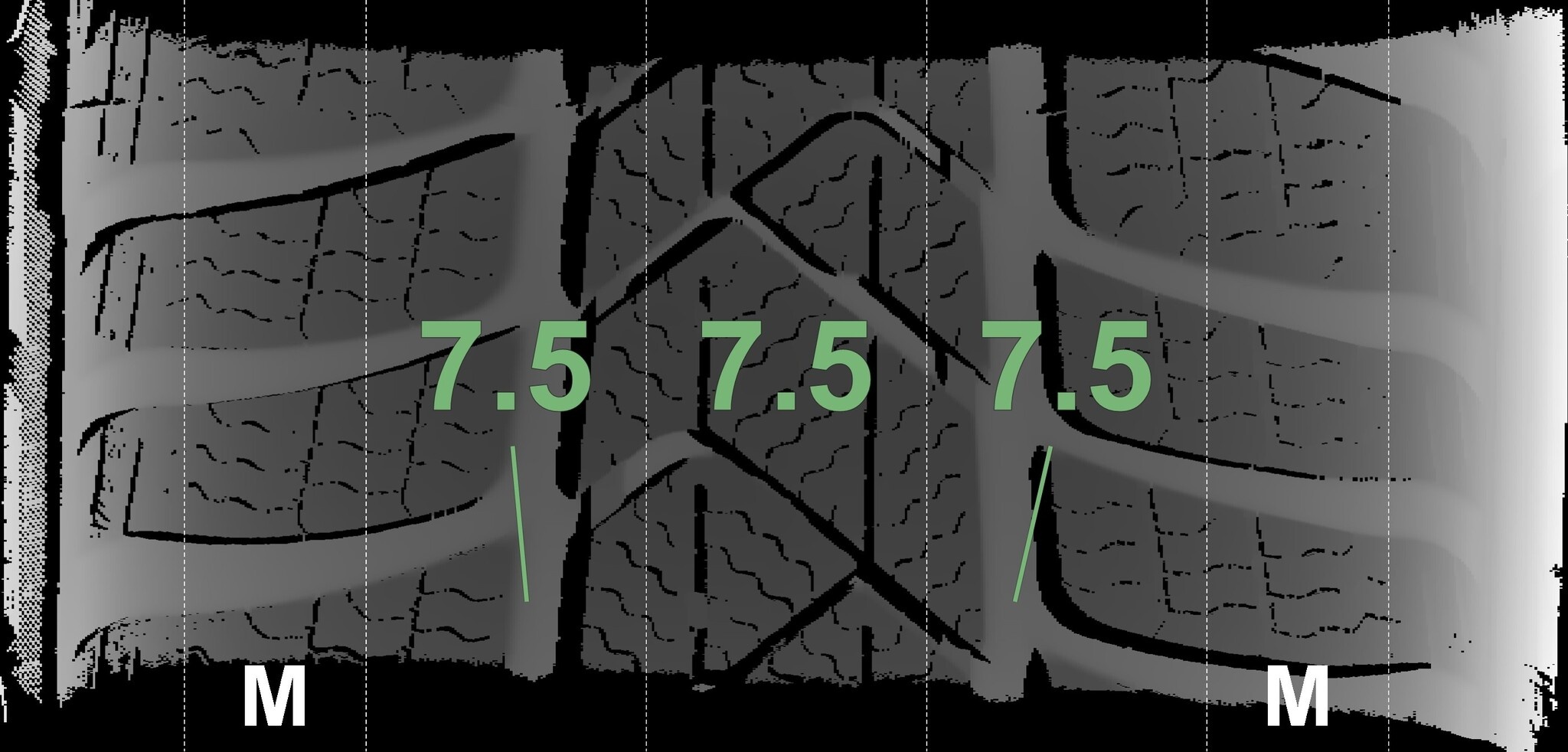 De gemeten profieldieptes en de details van de velgen zijn hierboven weergegeven.