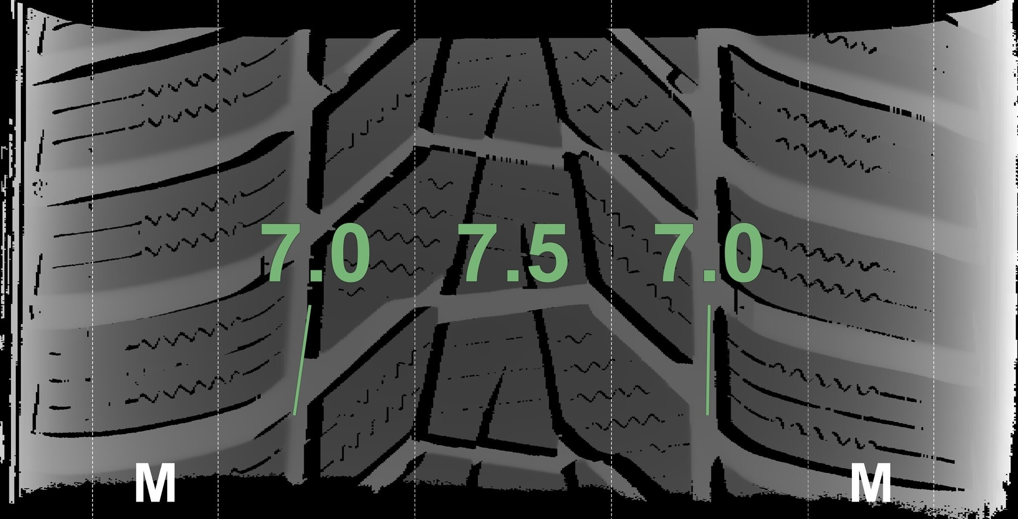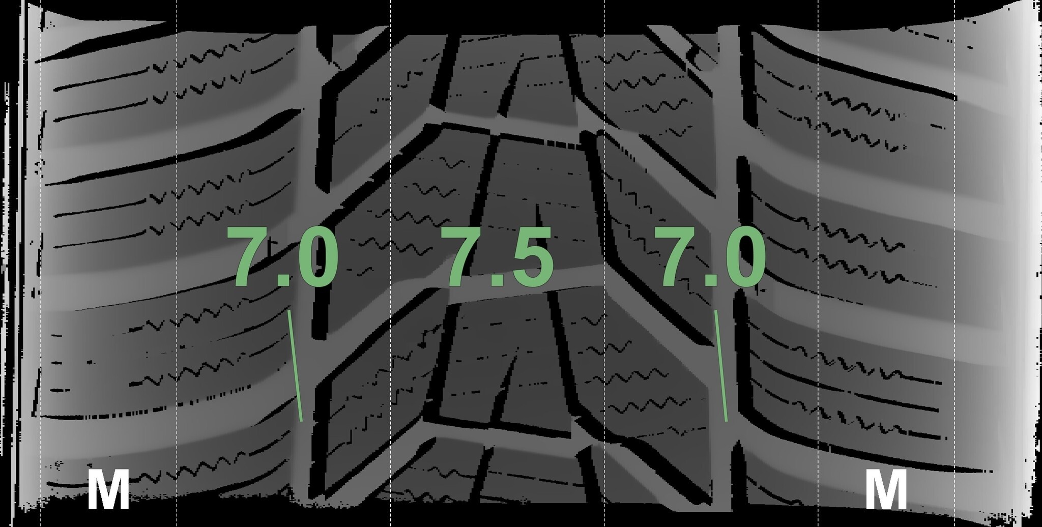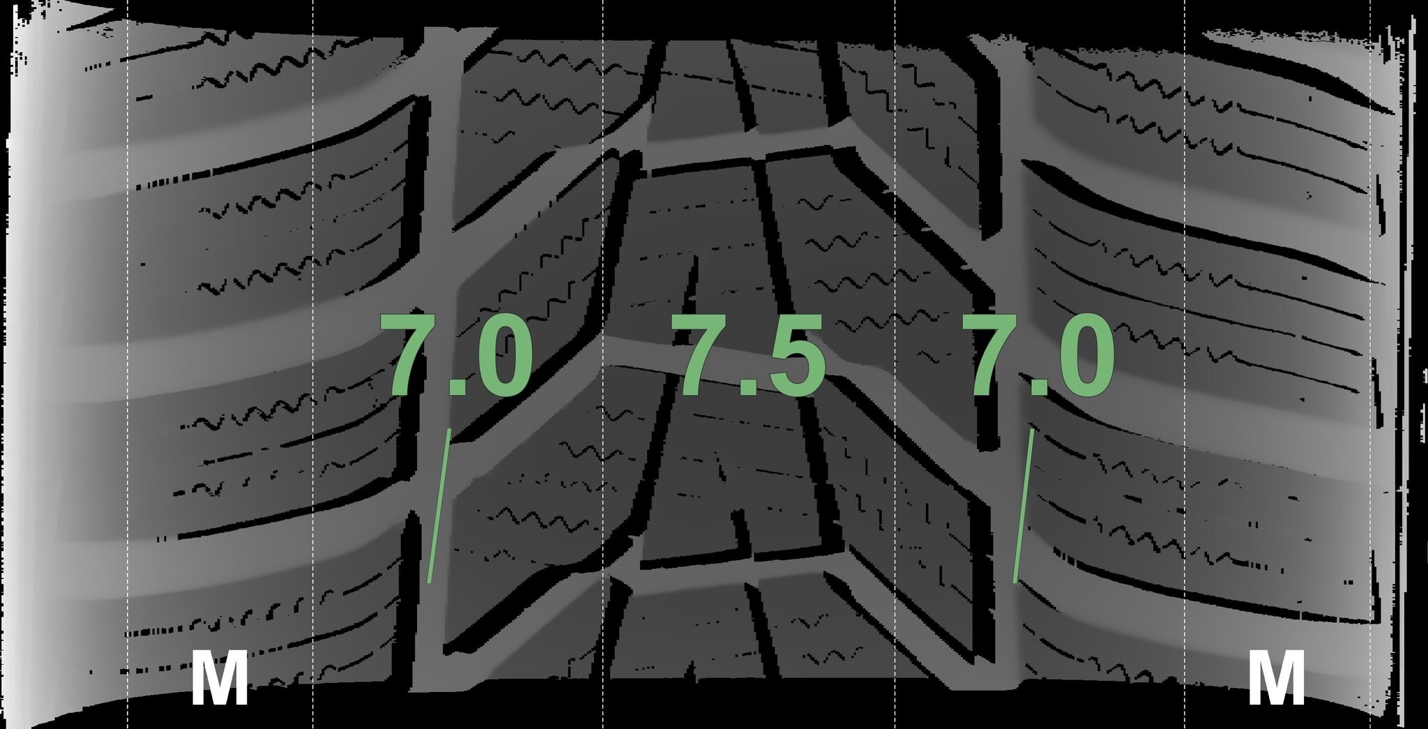De gemeten profieldieptes en de details van de velgen zijn hierboven weergegeven.