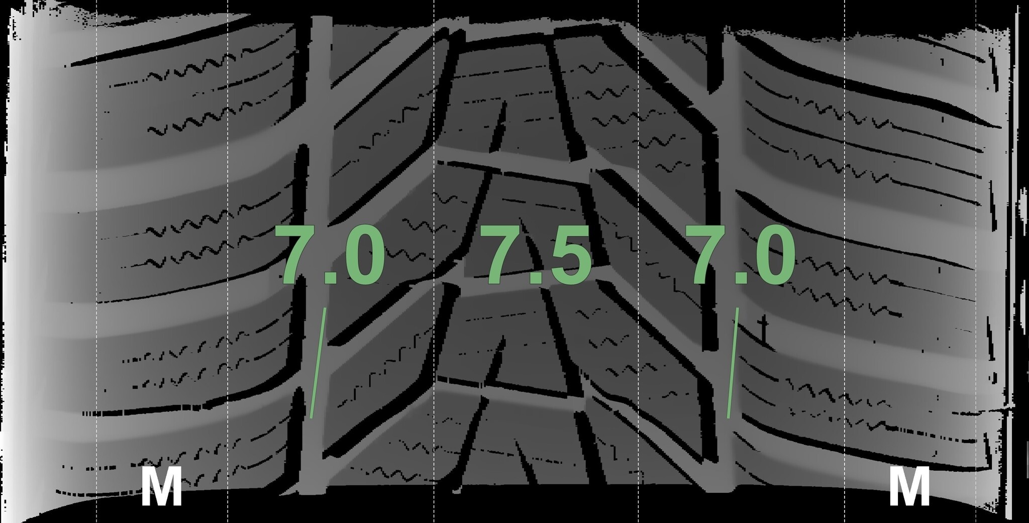 | Conditie | Profieldiepte | DOT | Rechts Achter | Demo nopjes nog zichtbaar | 7.2 mm | 2724 |