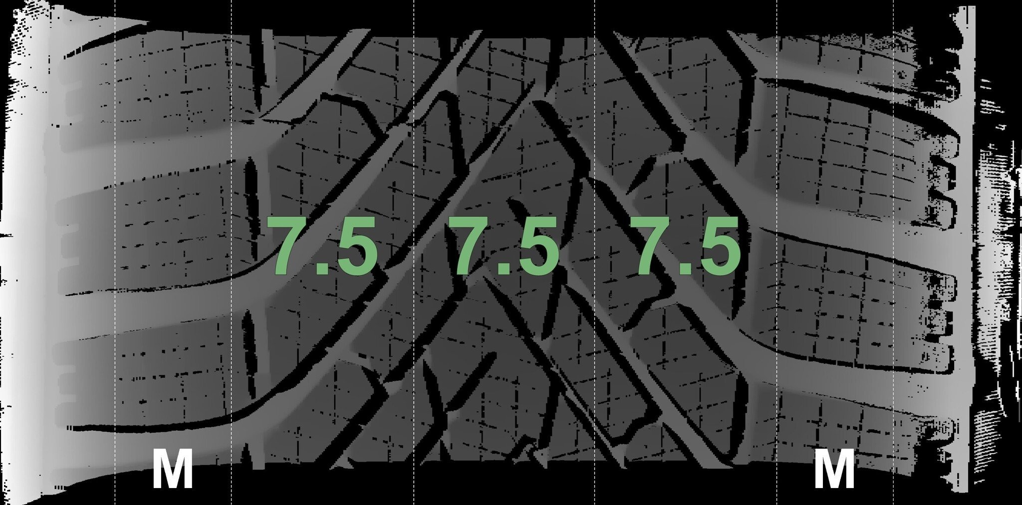 De gemeten profieldieptes en de details van de velgen zijn hierboven weergegeven.