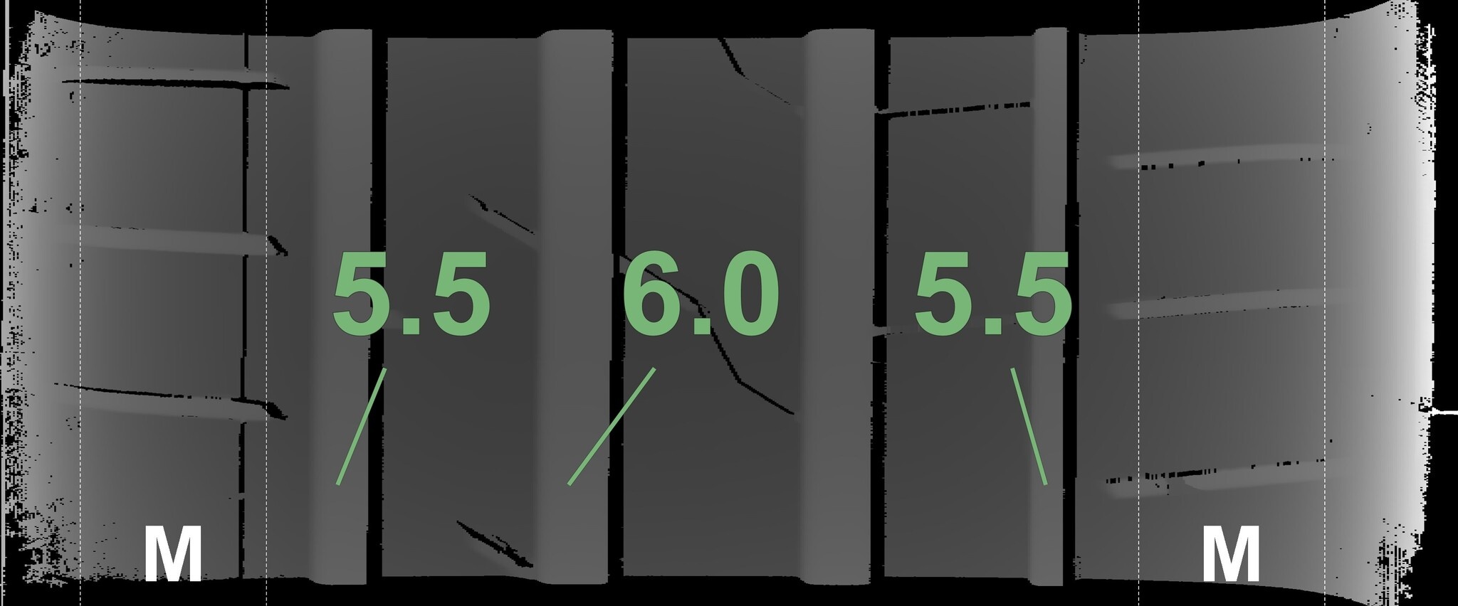 Conditie | Profieldiepte | DOT | Links Achter | Demo nopjes nog zichtbaar | 5.5 mm | 5224 |