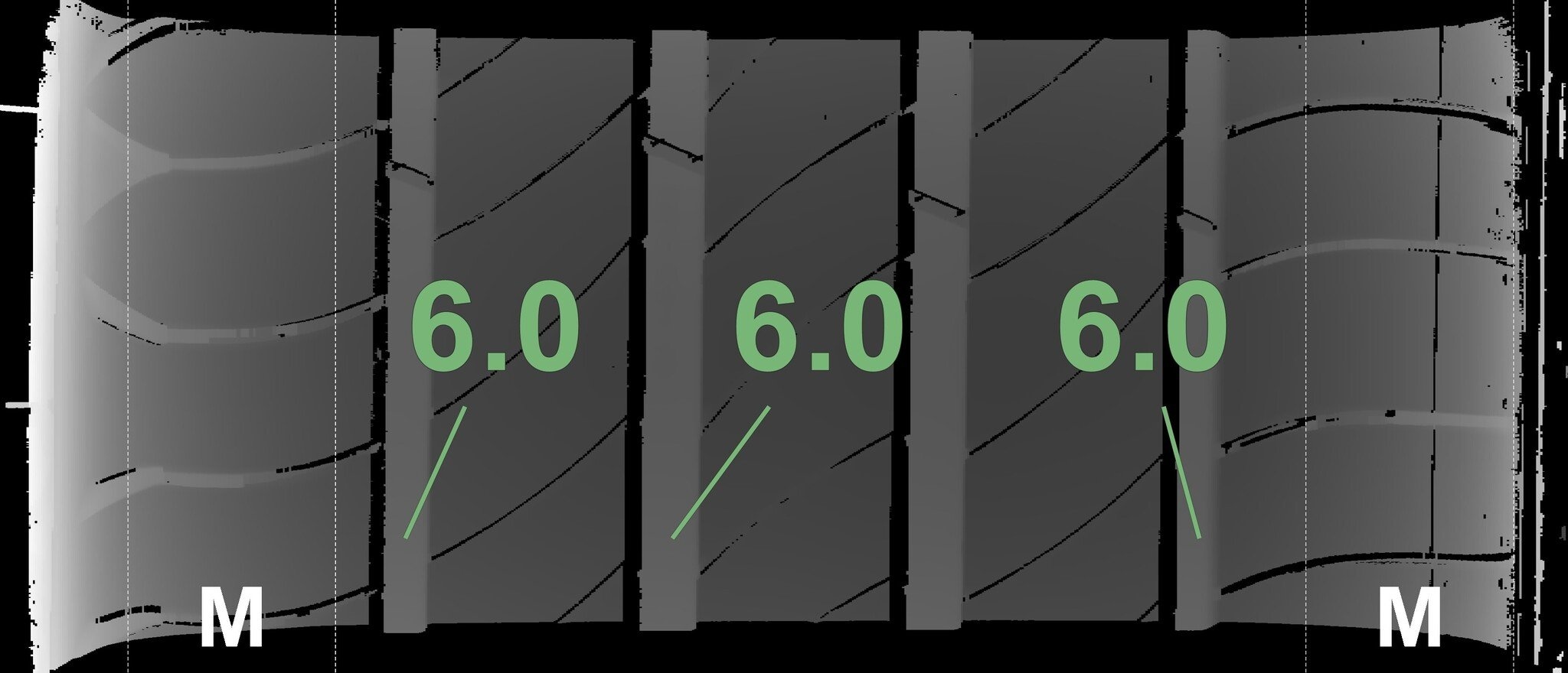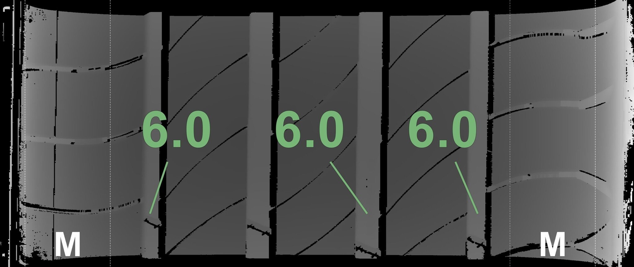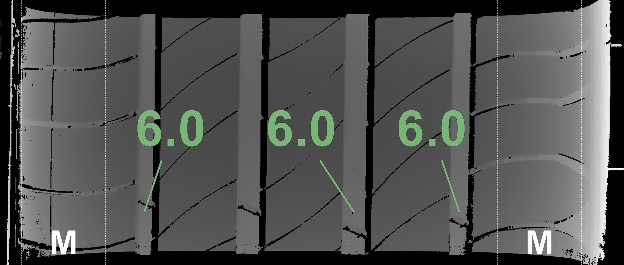 De gemeten profieldieptes en de details van de velgen zijn hierboven weergegeven.