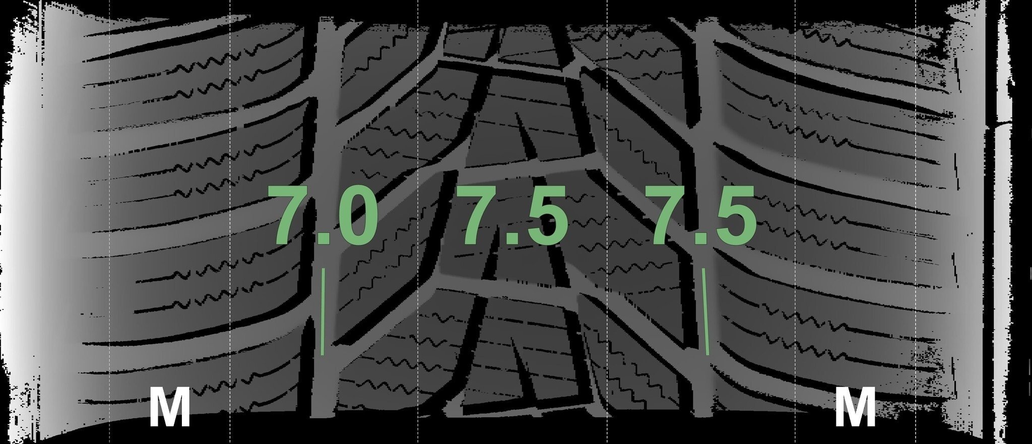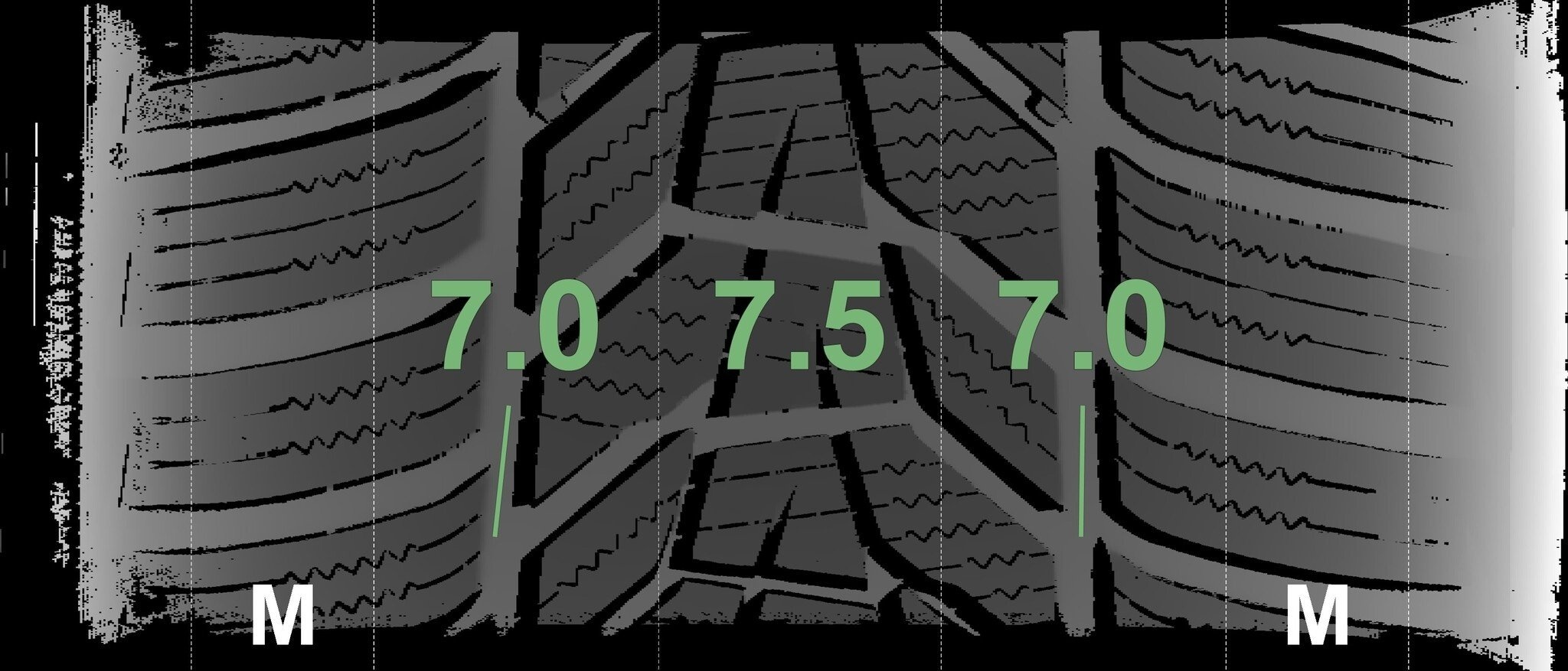 De gemeten profieldieptes en de details van de velgen zijn hierboven weergegeven.