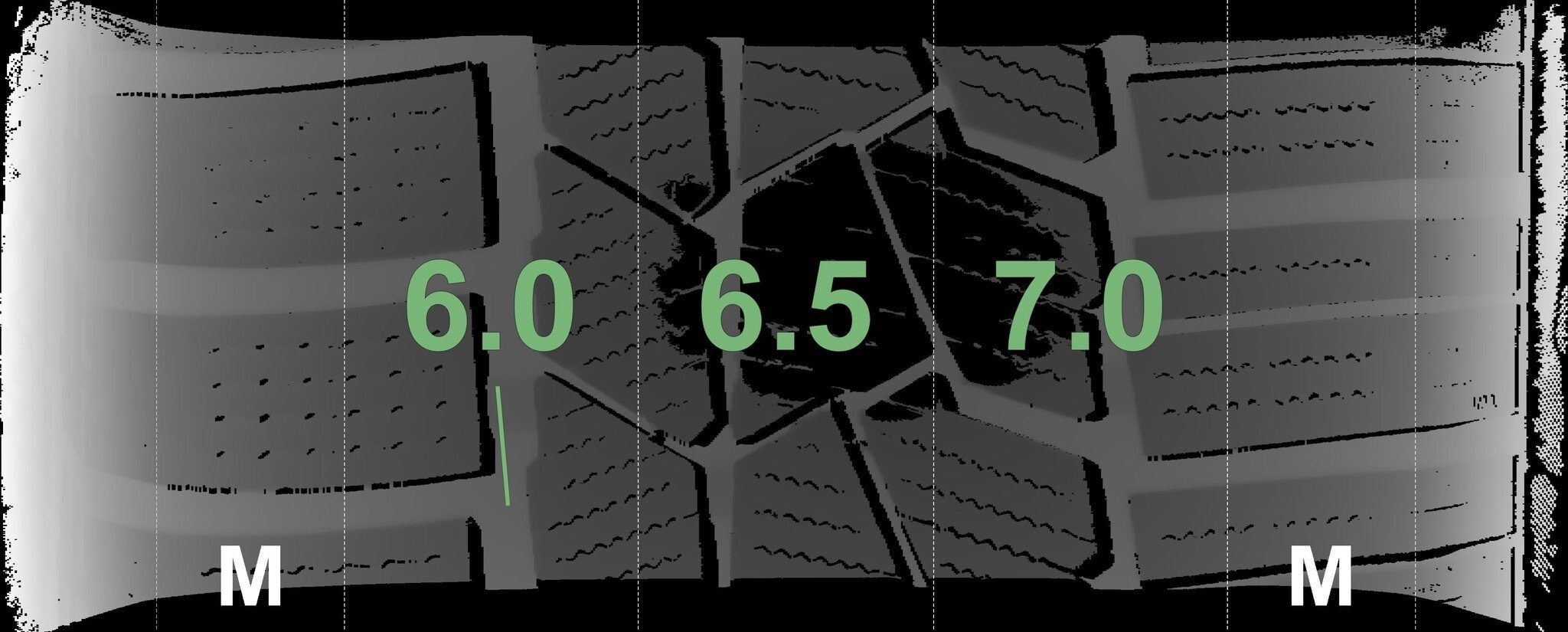 De gemeten profieldieptes en de details van de velgen zijn hierboven weergegeven.