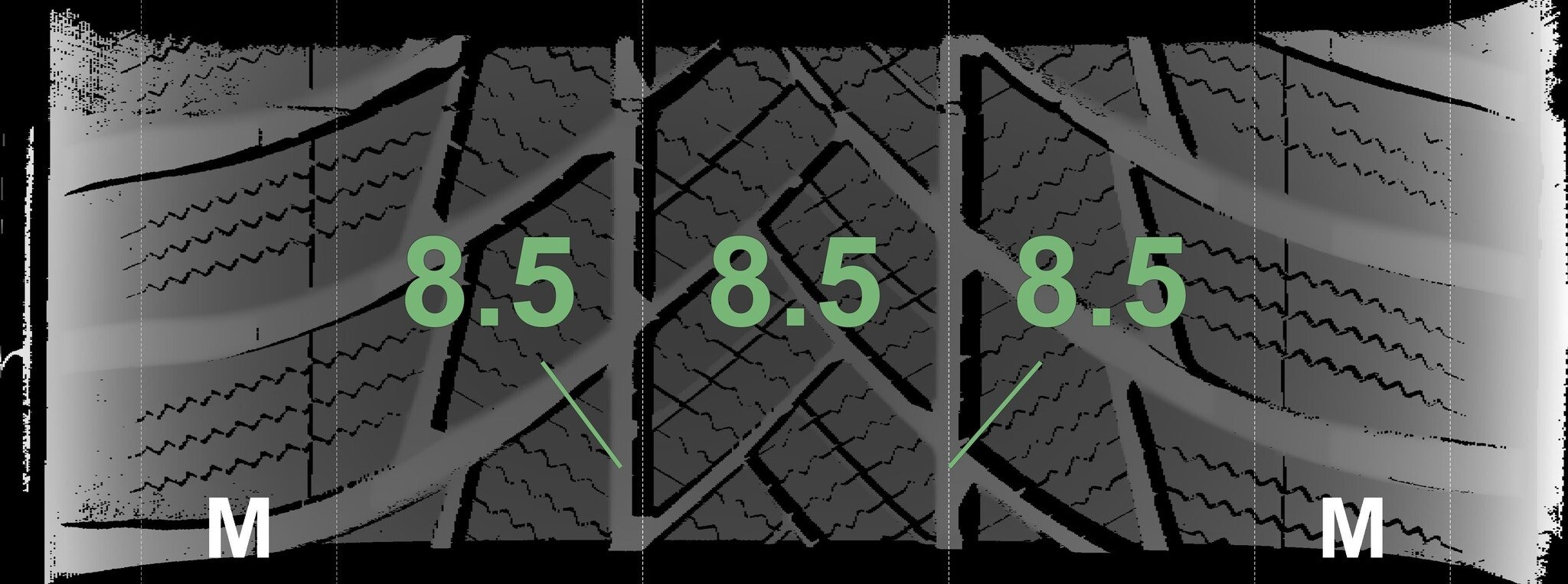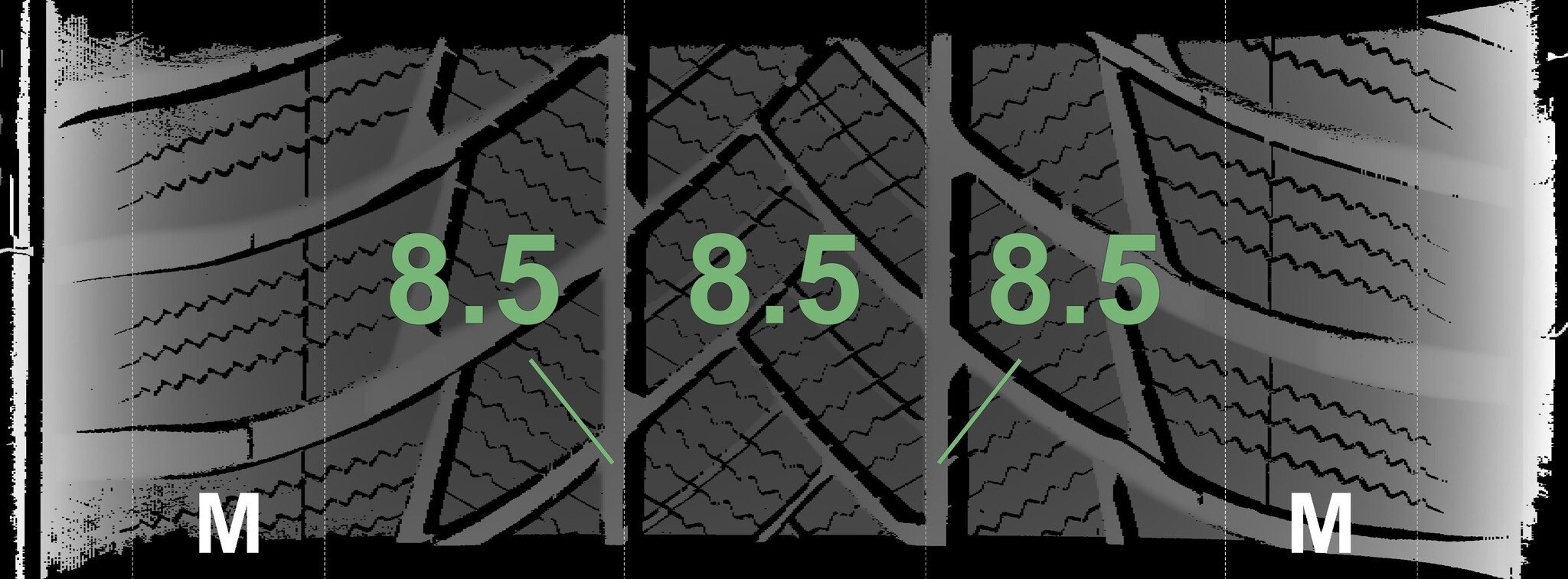 Conditie | Profieldiepte | DOT | Rechts Achter | Demo nopjes nog zichtbaar | 8.5 mm | 4319 |