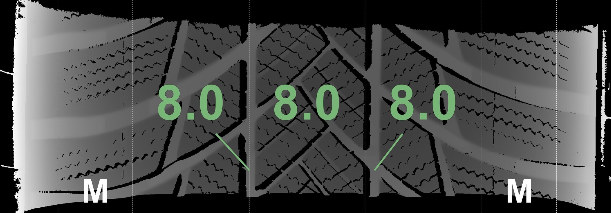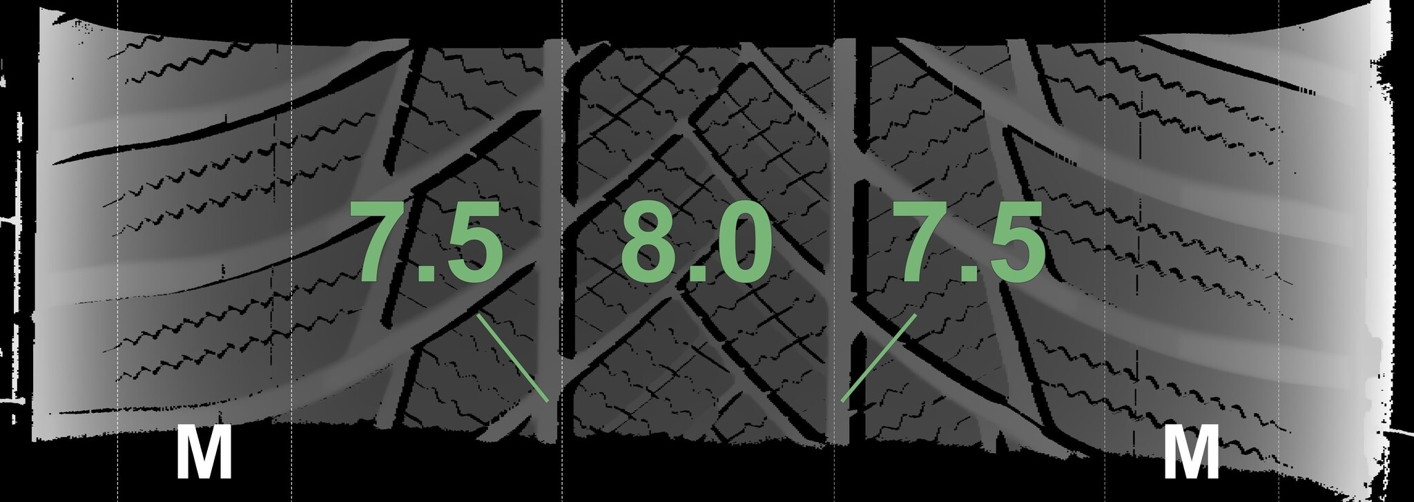 De gemeten profieldieptes en de details van de velgen zijn hierboven weergegeven.