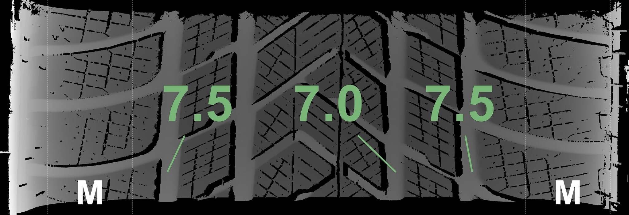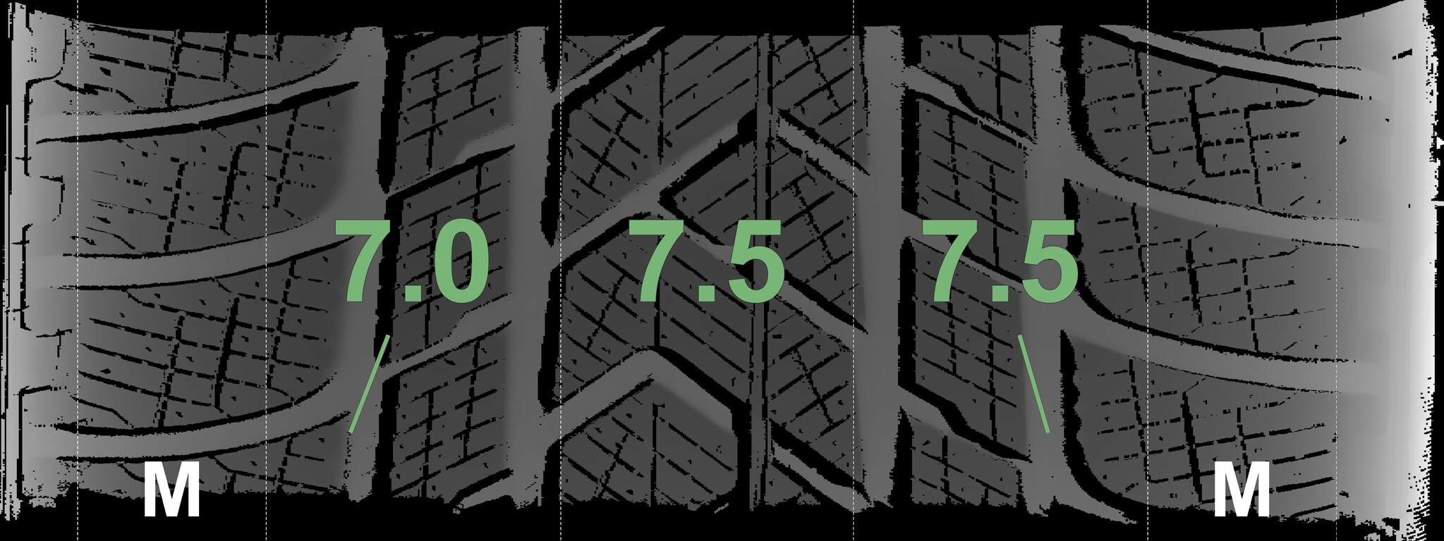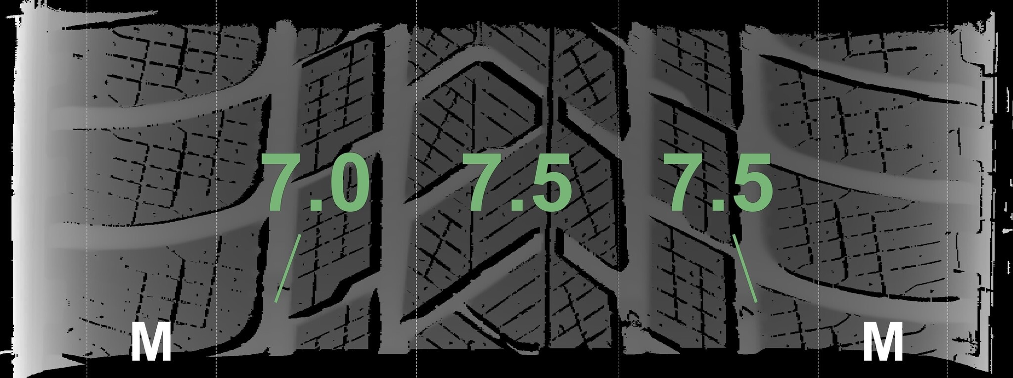 De gemeten profieldieptes en de details van de velgen zijn hierboven weergegeven.