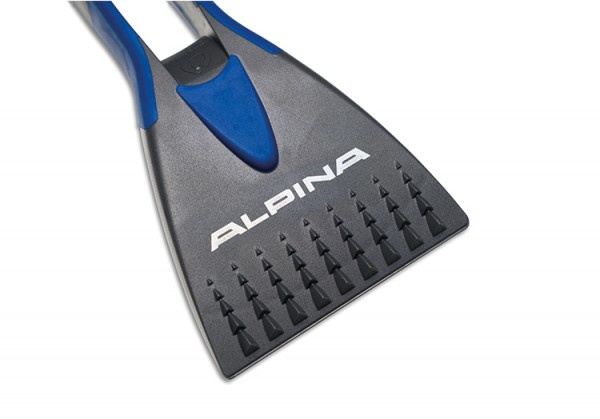 ALPINA ijskrabber in antraciet en donkerblauw met het ALPINA-woordmerk Lees meer