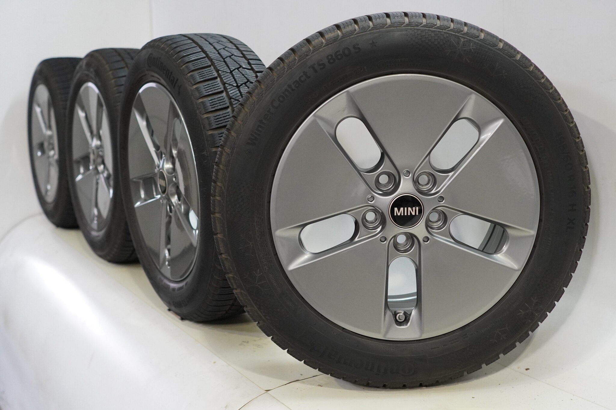 Originele wielset van Mini, styling 990 16 inch velgen met Continental WINTER CONTACT TS860 Winterbanden. Deze velgen zijn originele velgen van het merk Mini en geschikt voor: Mini Cooper J01.