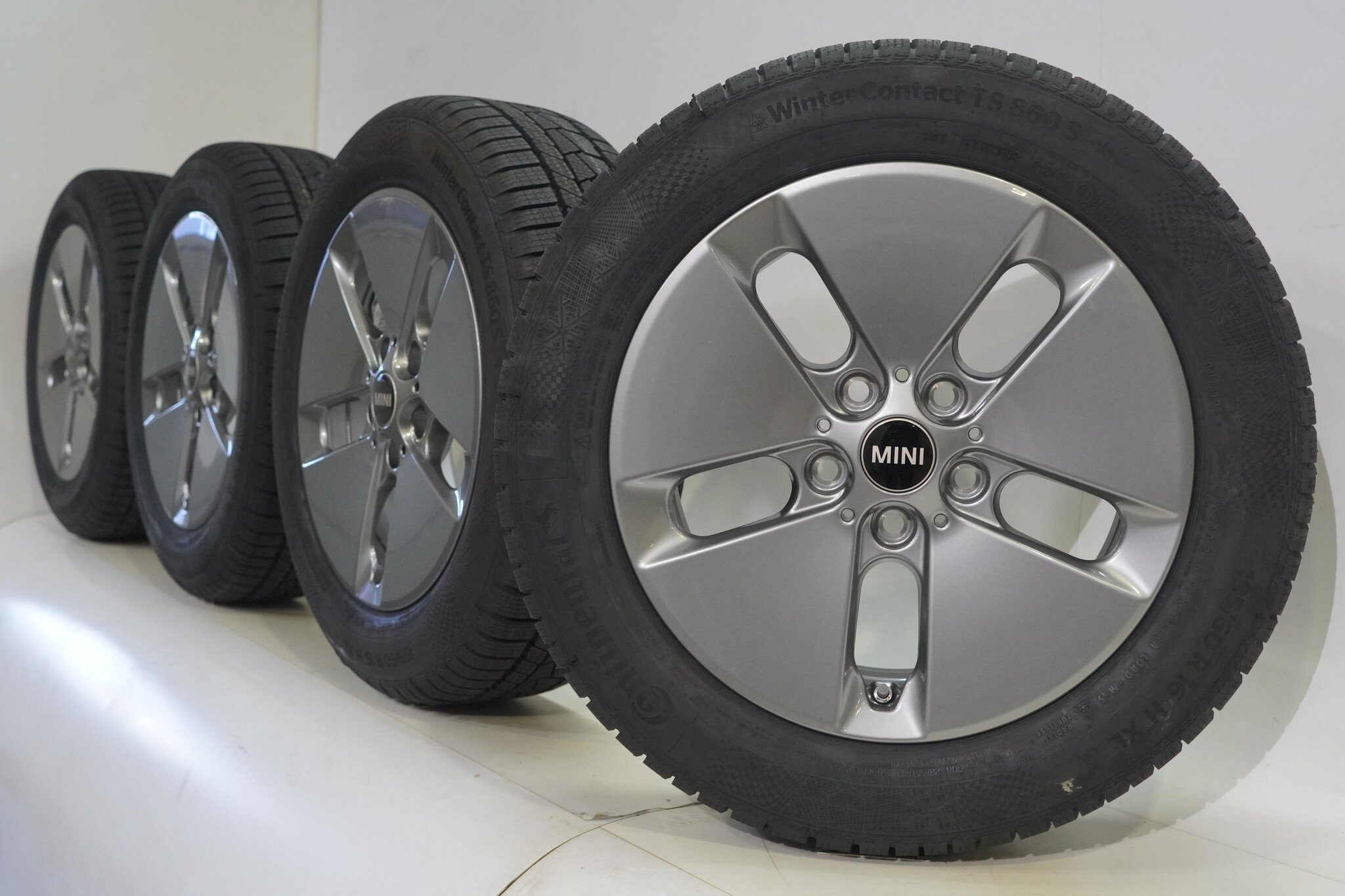 Originele wielset van Mini, styling 990, 16 inch velgen met Continental WINTER CONTACT TS860 Winterbanden. Deze velgen zijn originele velgen van het merk Mini en geschikt voor: Mini Cooper J01.