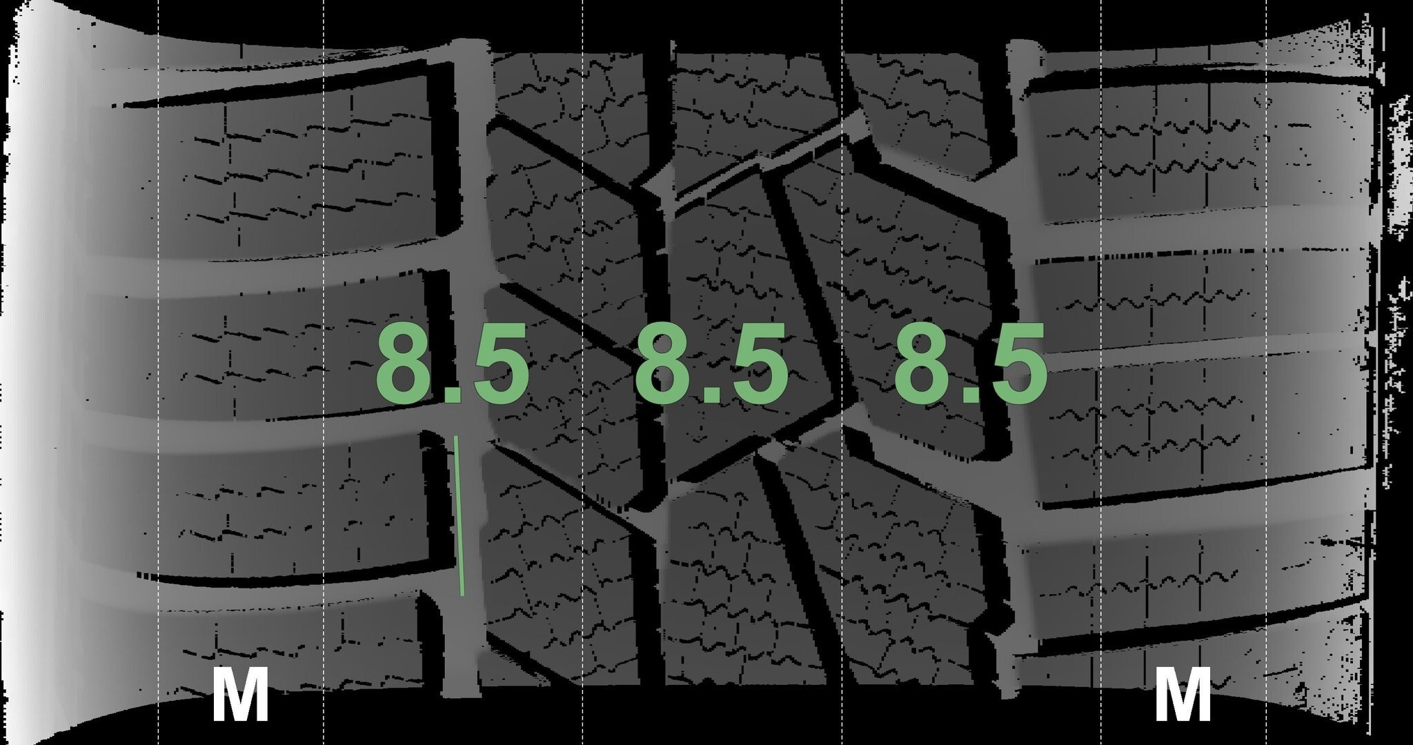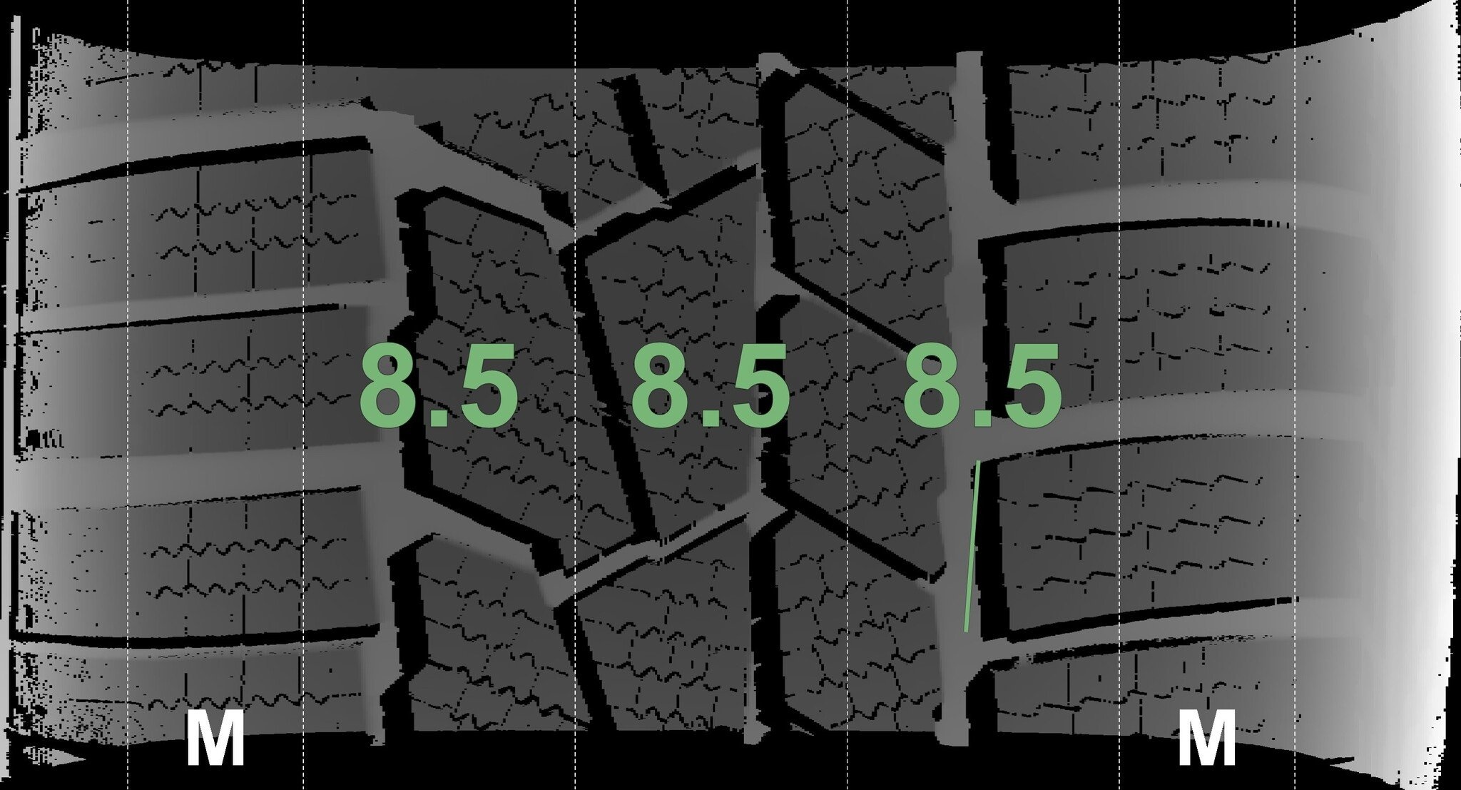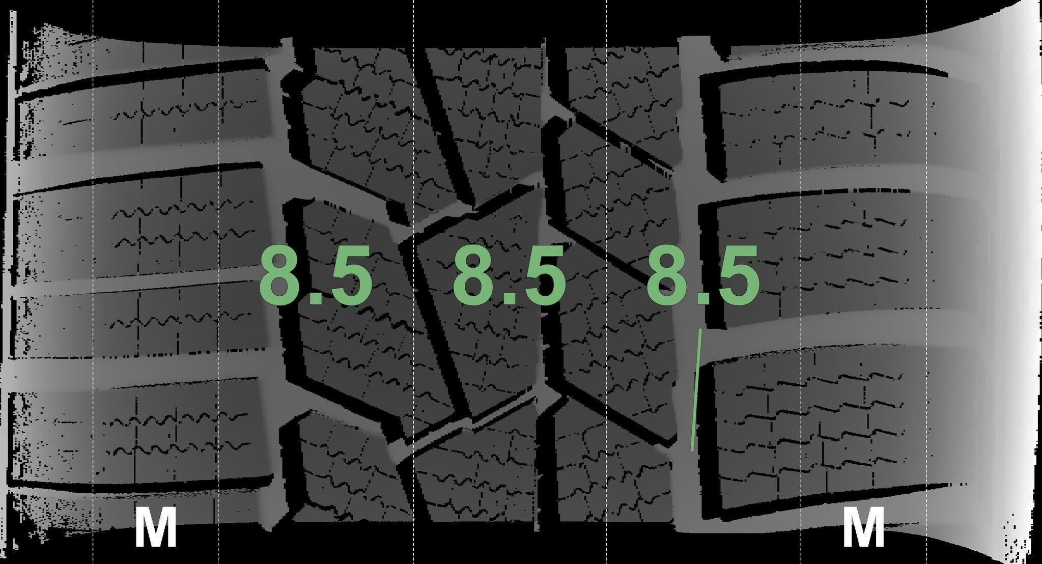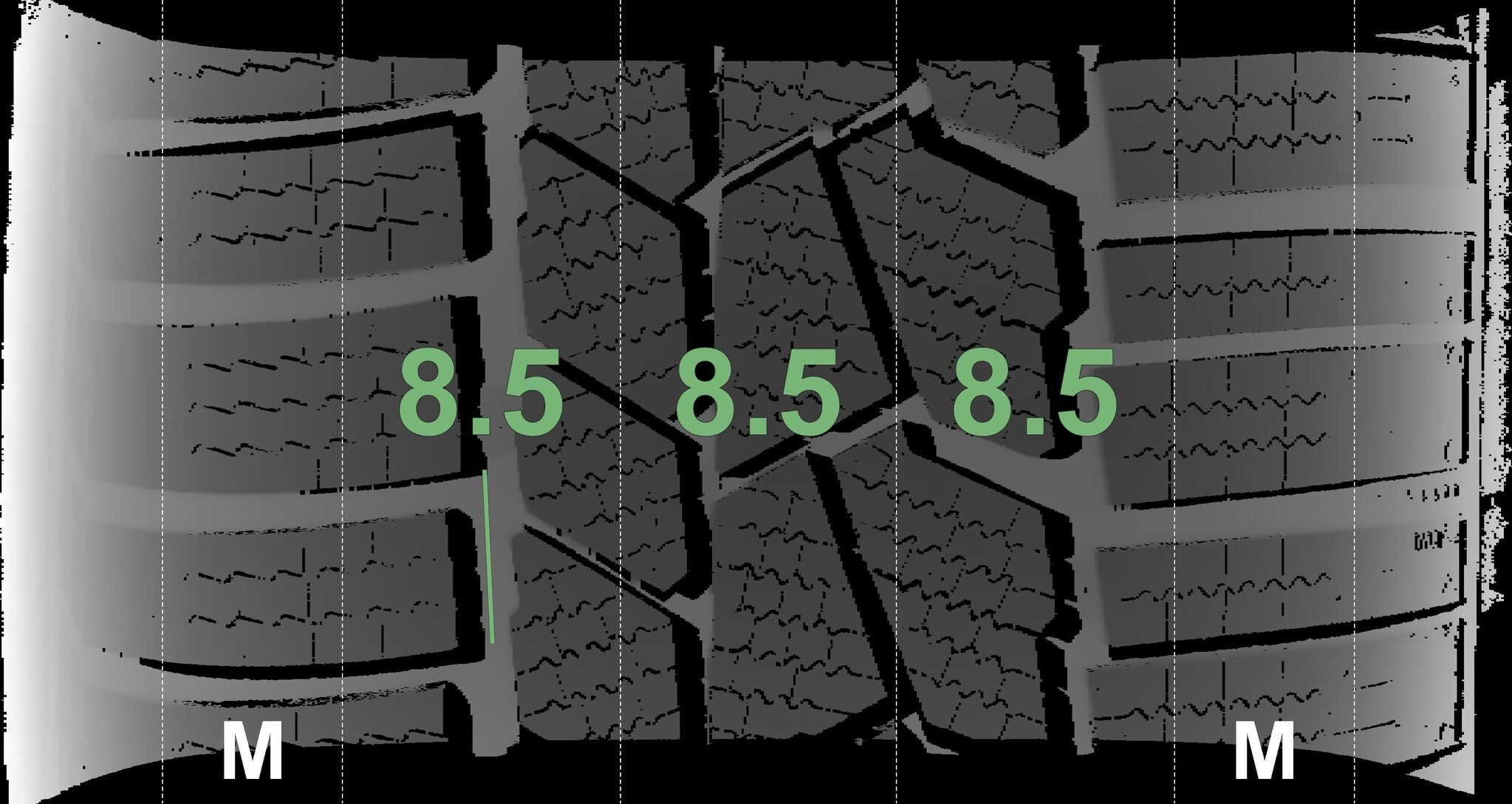 De gemeten profieldieptes en de details van de velgen zijn hierboven weergegeven.
