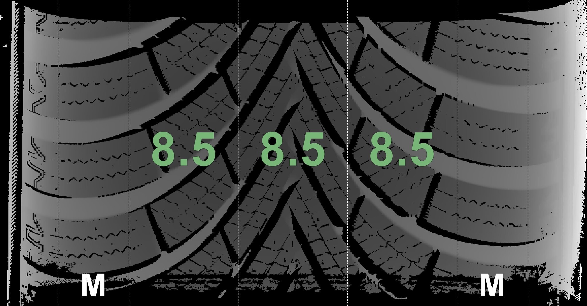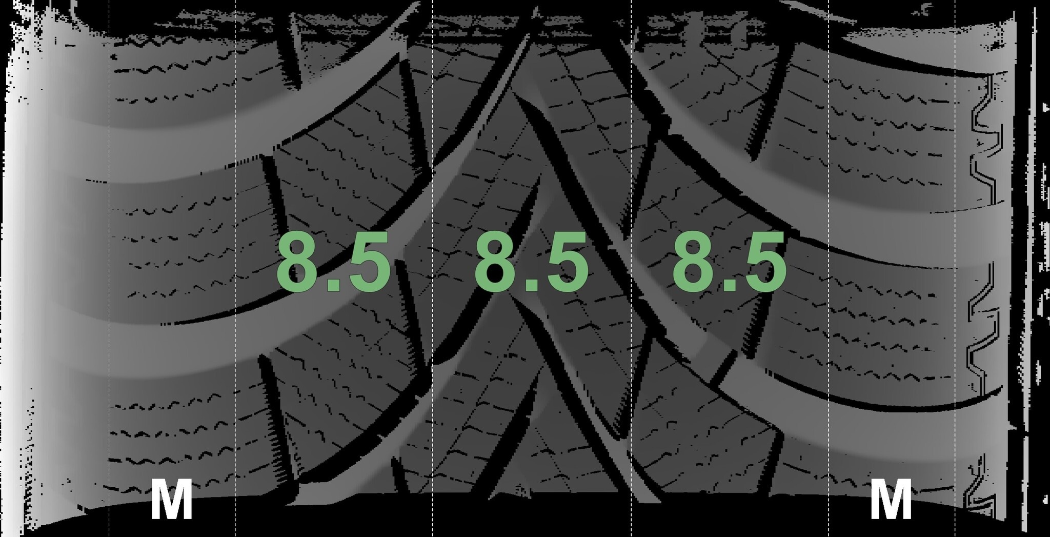 | Conditie | Profieldiepte | DOT | Rechts Voor | Nieuw | 8.5 mm | 1625 |