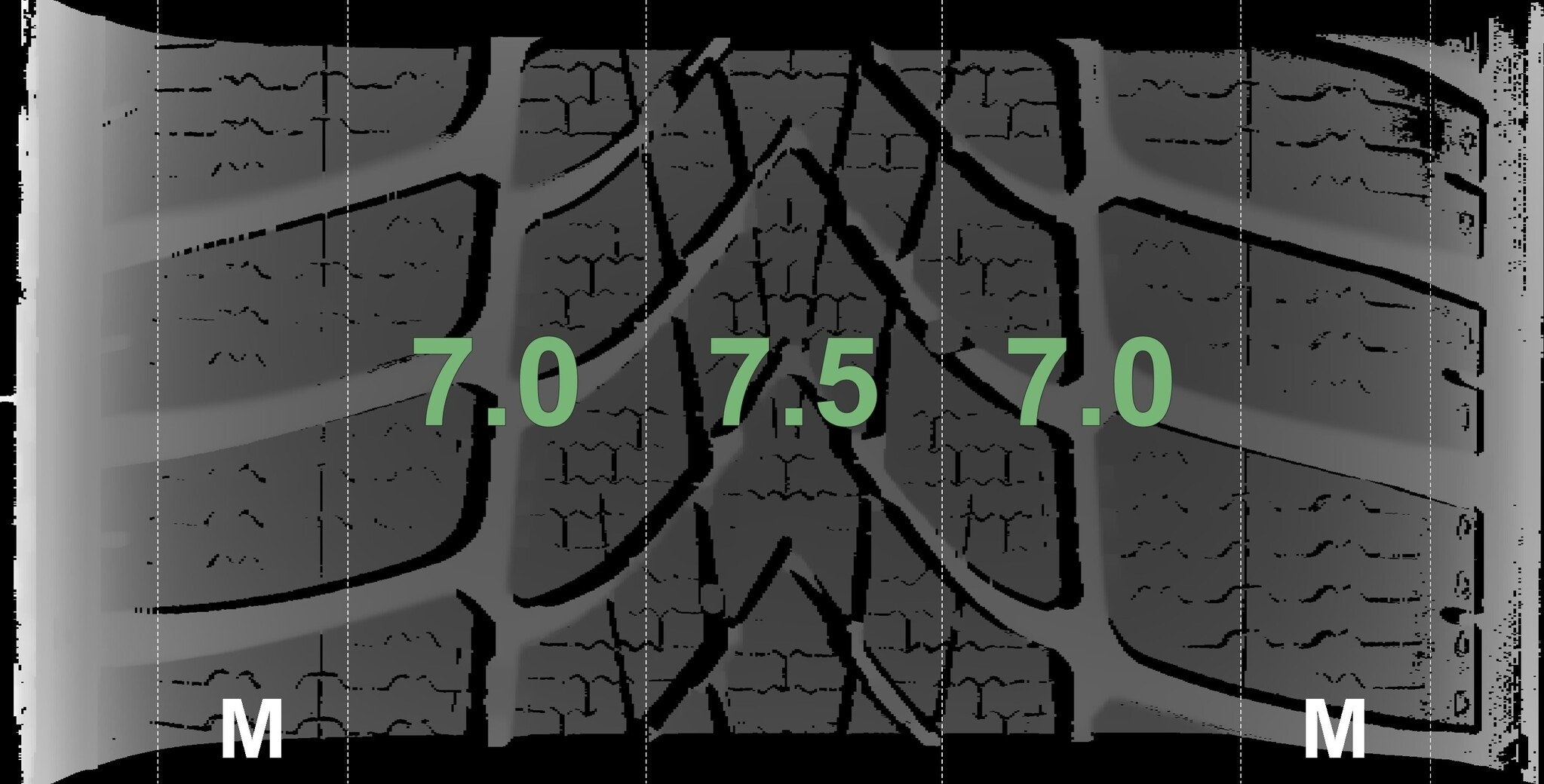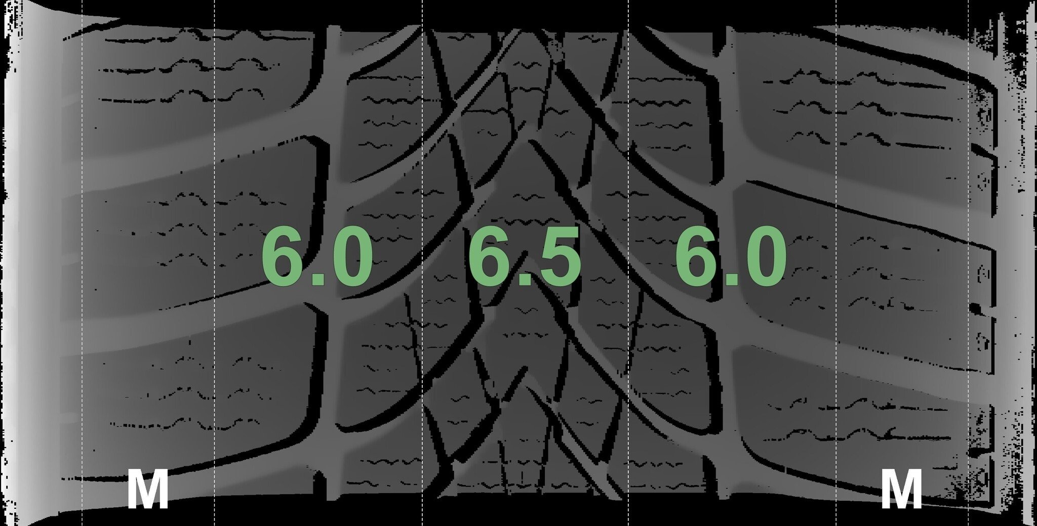De gemeten profieldieptes en de details van de velgen zijn hierboven weergegeven.